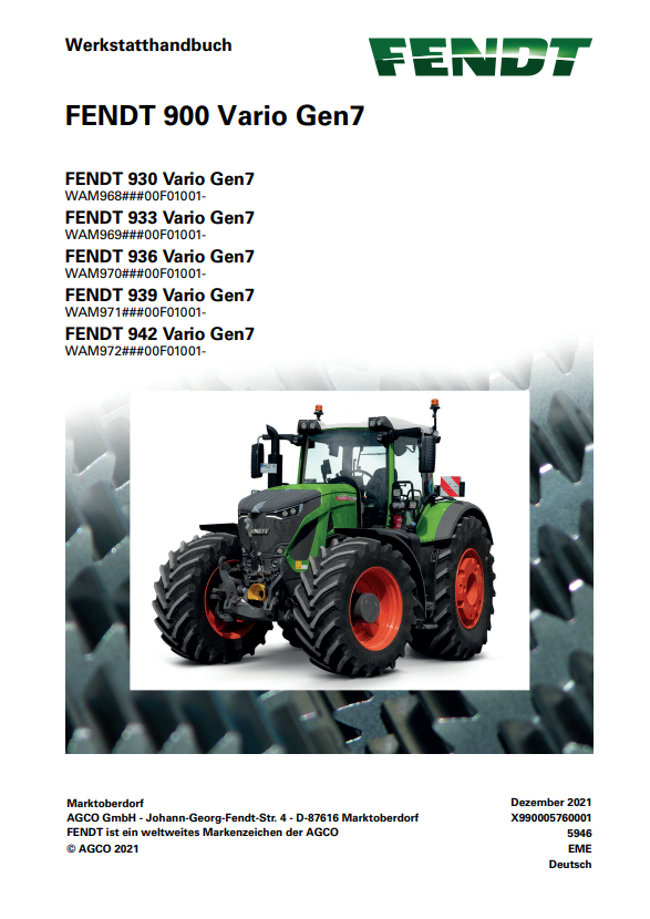 Fendt 930 933 936 939 942 Vario Gen7 Workshop Manual DE