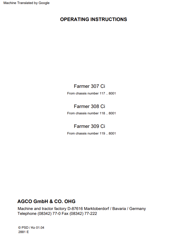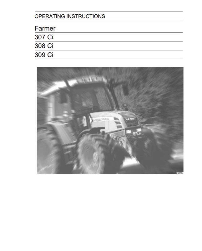 Fendt Farmer 307Ci 308Ci 309Ci Tractor Operator Manual ENG