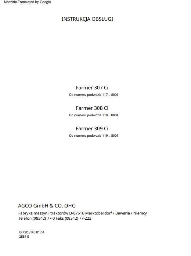 Fendt Farmer 307Ci 308Ci 309Ci Tractor Operator Manual PL