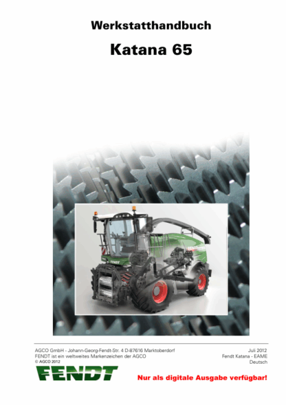 Fendt Katana 65 Forage Harvester Workshop Manual
