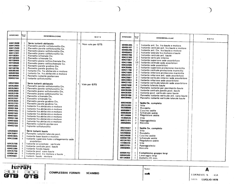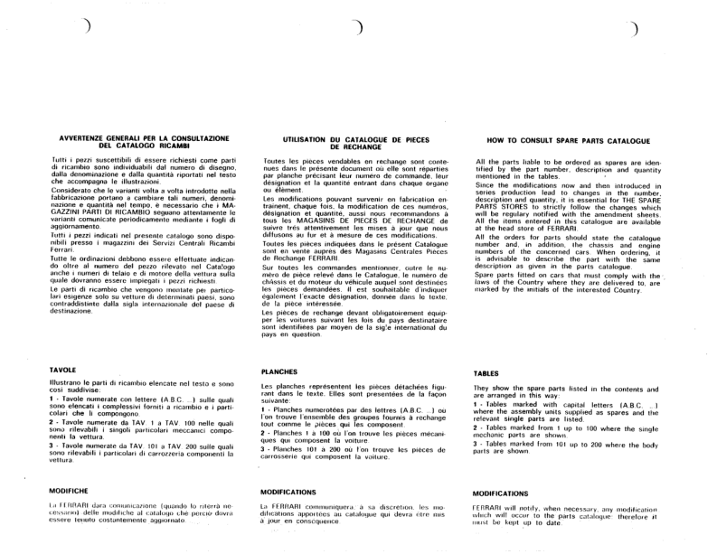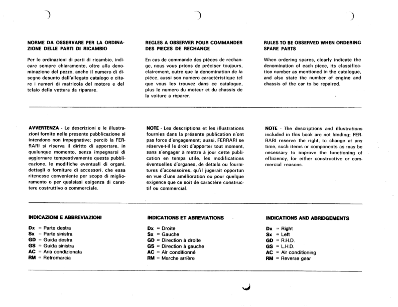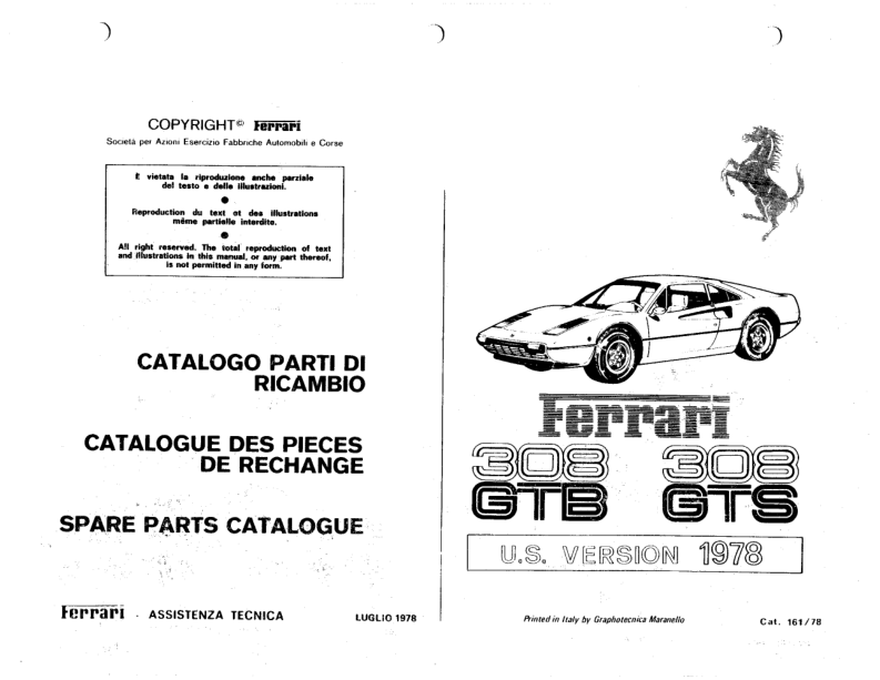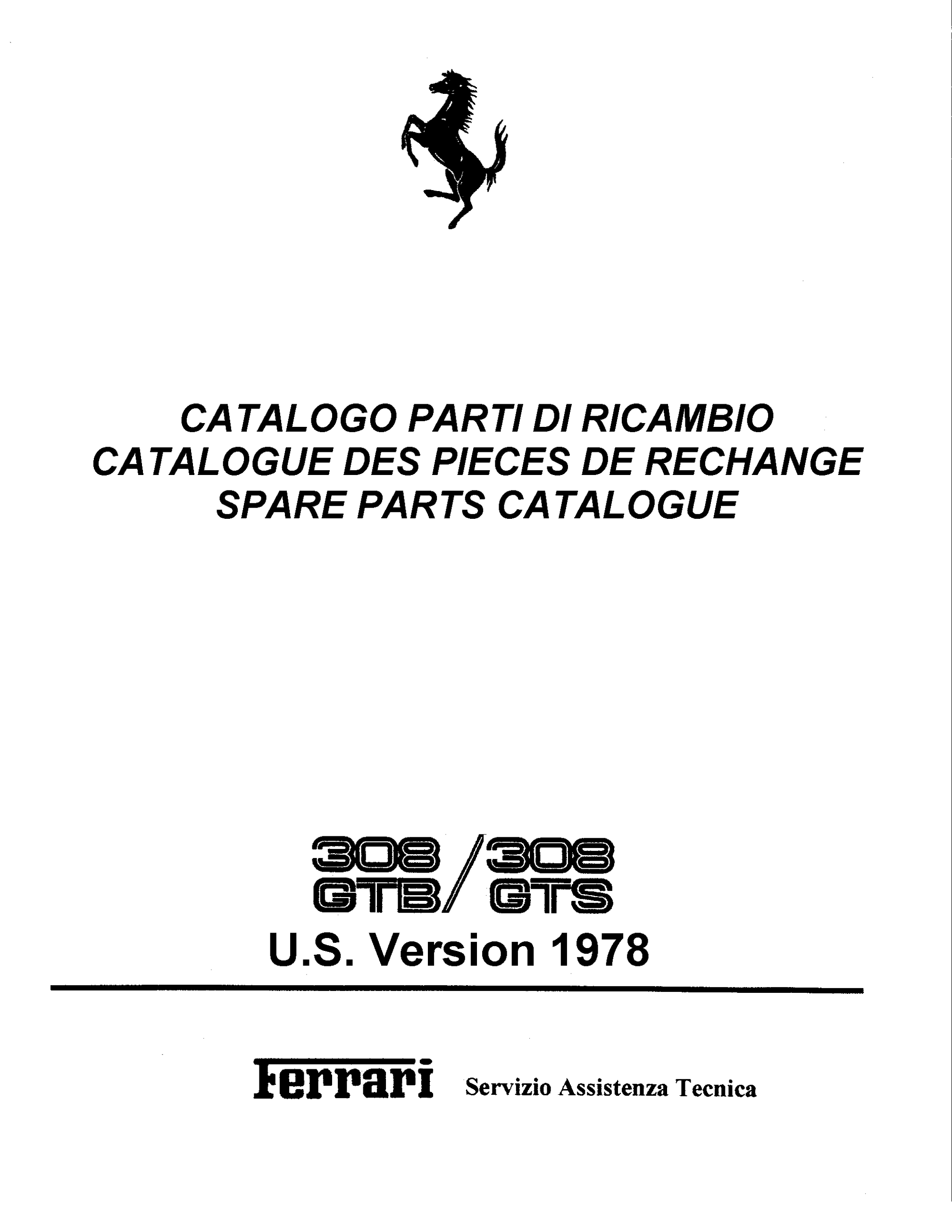 Ferrari 308 GTB 308 GTS Spare Parts Catalogue U.S Version 1978