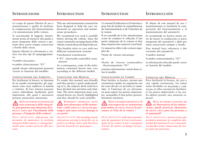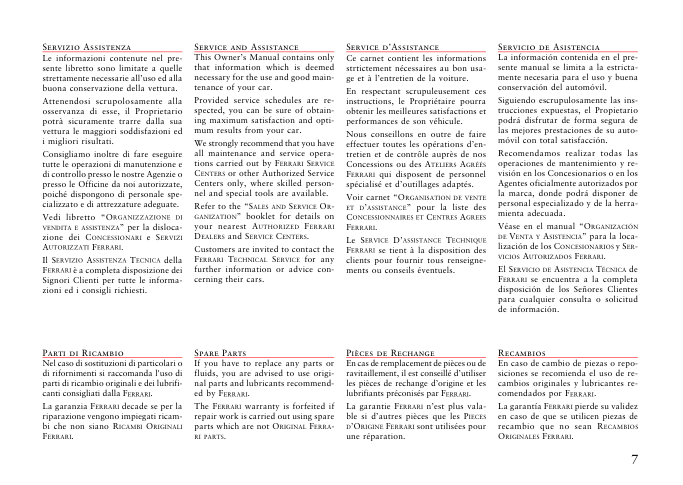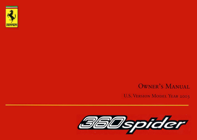 Ferrari 360 Spider Cabrio Car Owners Manual EN