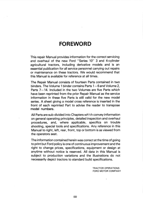 Ford 2610 3610 4110 4610 5610 6610 6710 7610 7710 Tractors Repair Manual SE 3870 Vol1 and Vol2