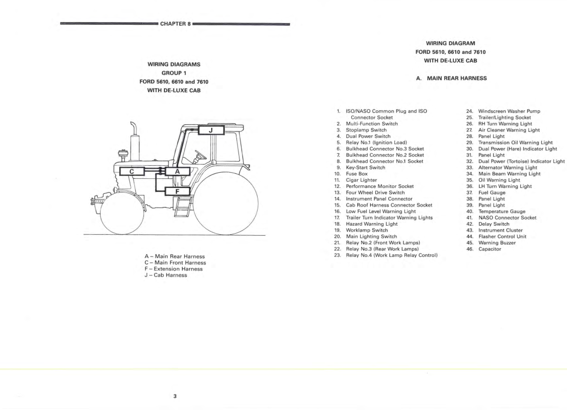 FORD 5610 6610 7610 With DE-LUXE Cab Wiring Diagrams Electrical Manual