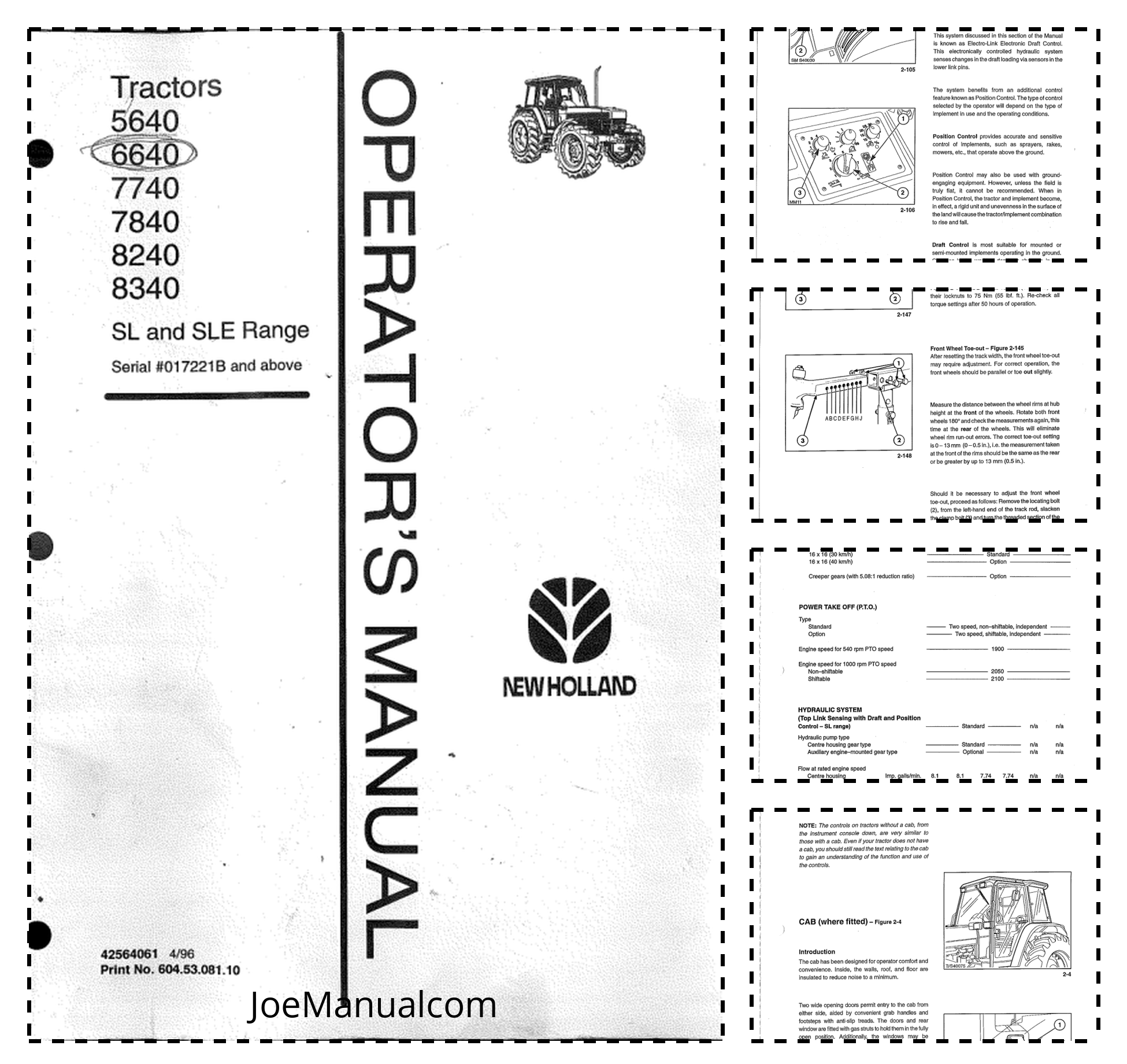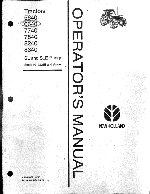 Ford 5640 6640 7740 7840 8240 8340 Tractors Operators Manual