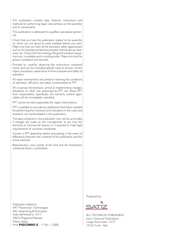 FPT Fiat Powertrain N45 N67 NEF Engines Technical and Repair Manual 9806/4900