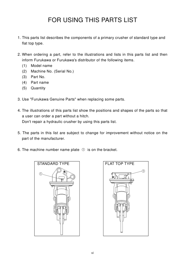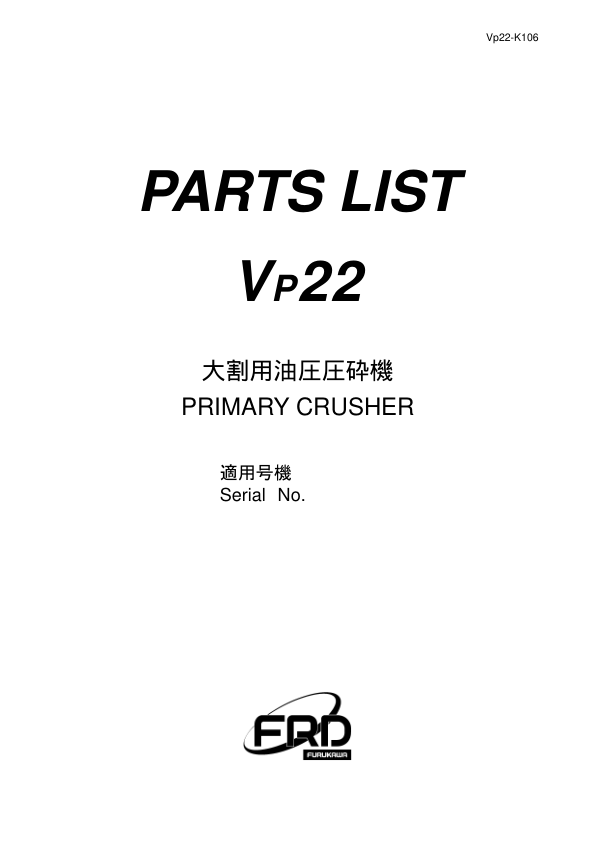 Furukawa VP22 Primary Crusher Parts Catalog