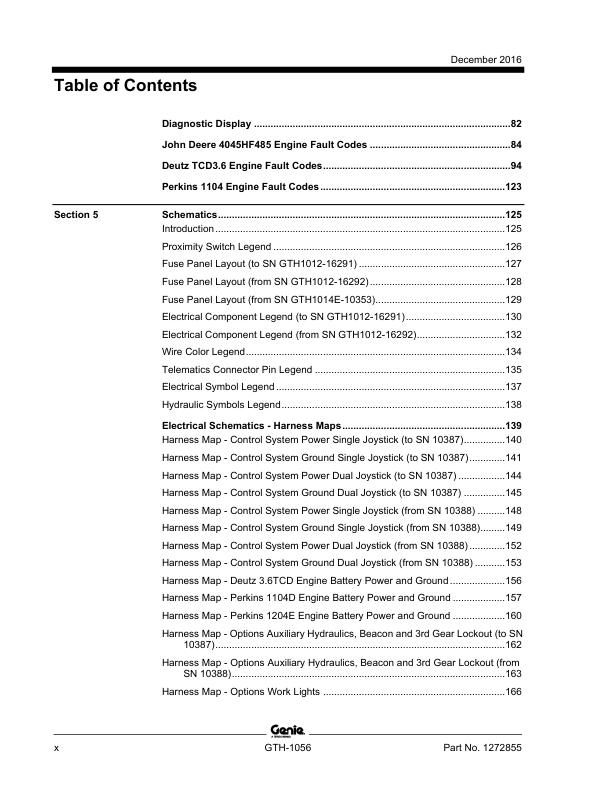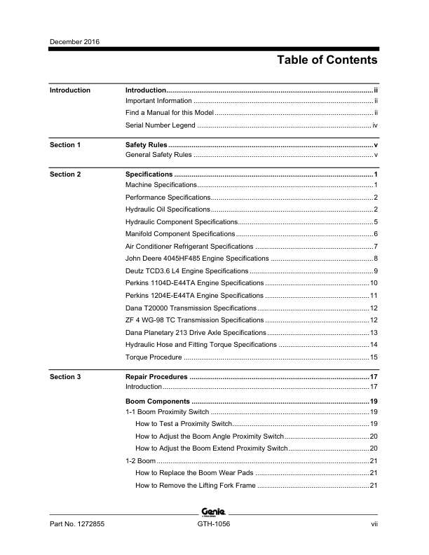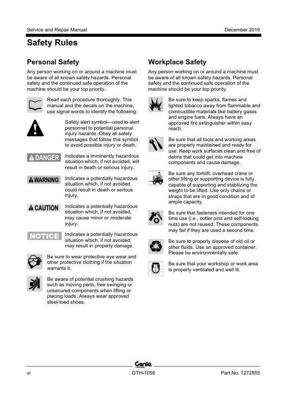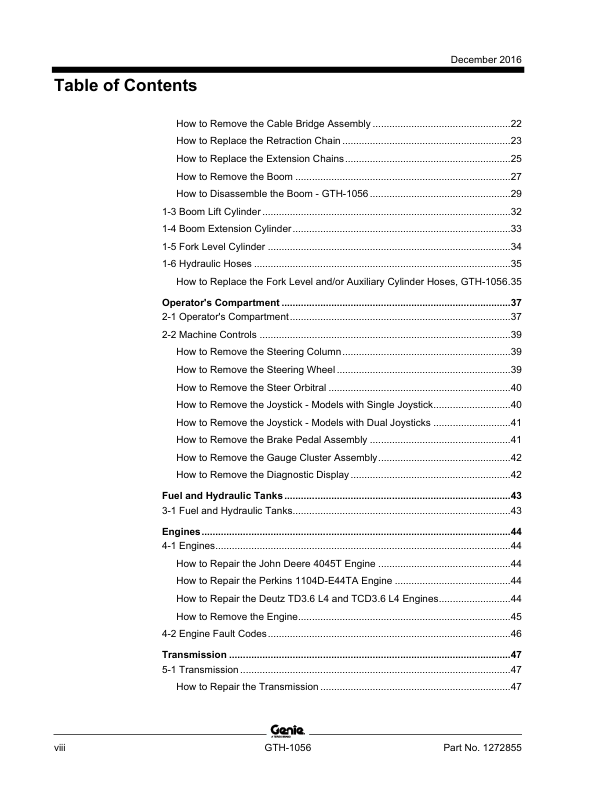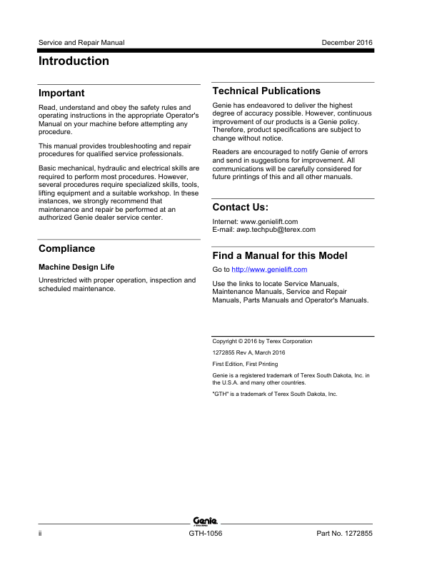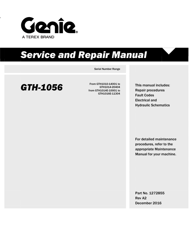 Genie TEREX GTH-1056 Telehandler Service Manual 2016