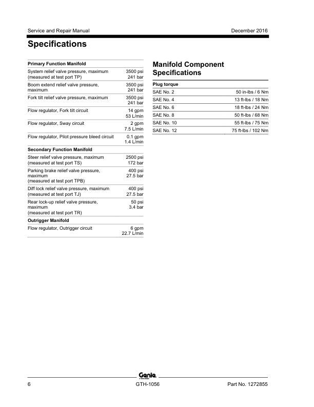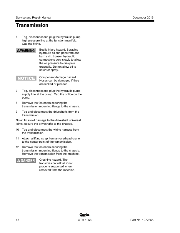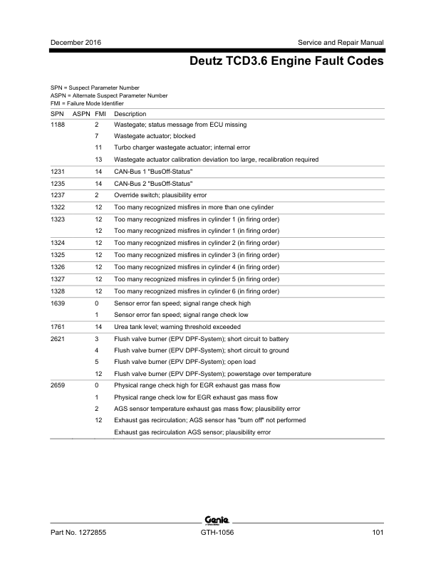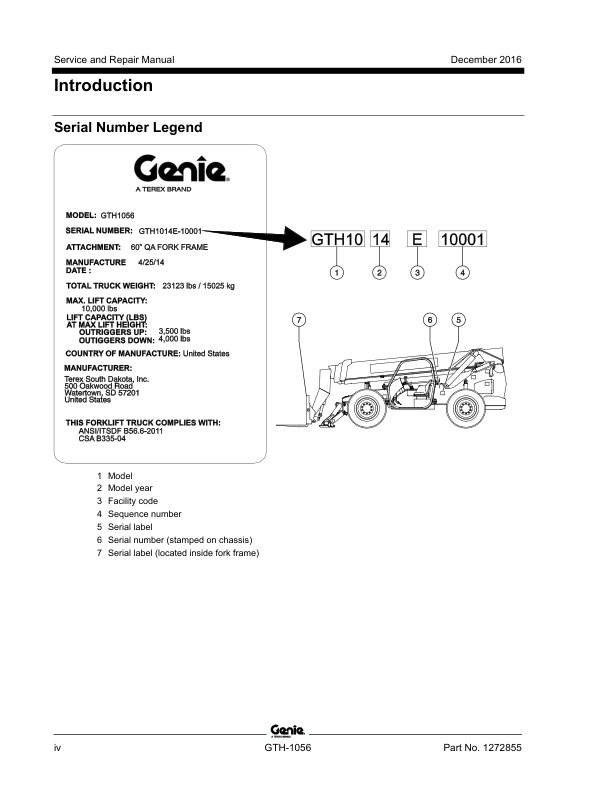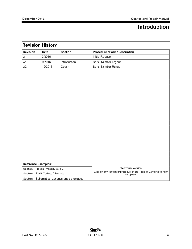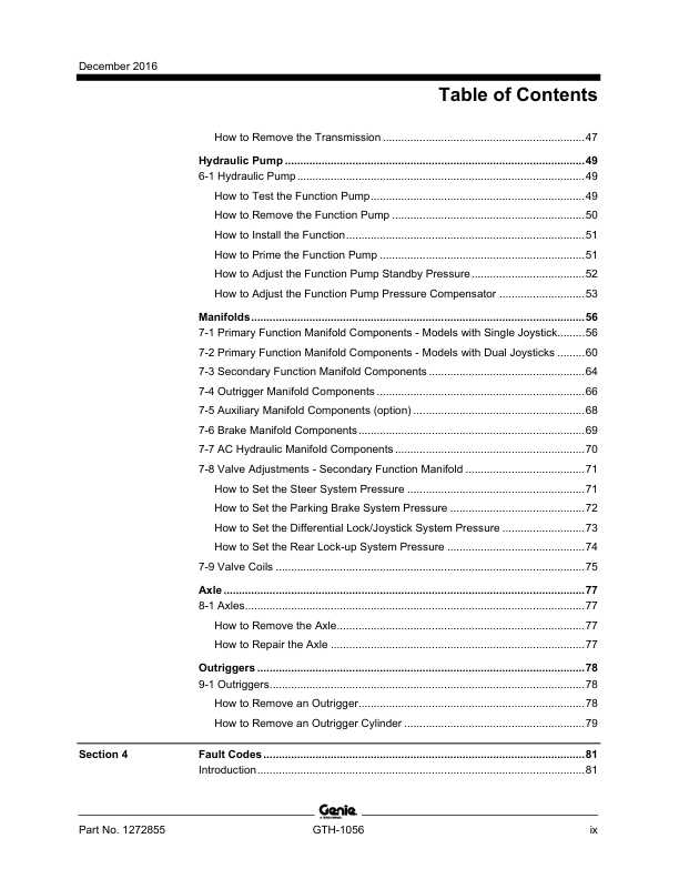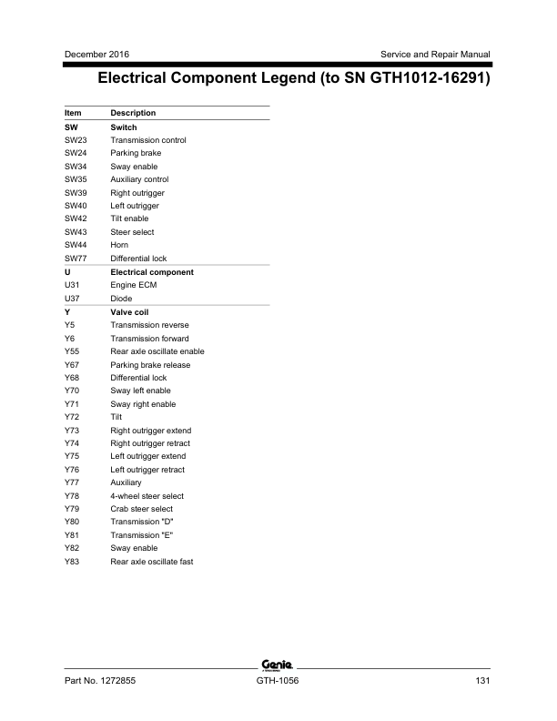 Genie TEREX GTH-1056 Telehandler Service Manual 2016