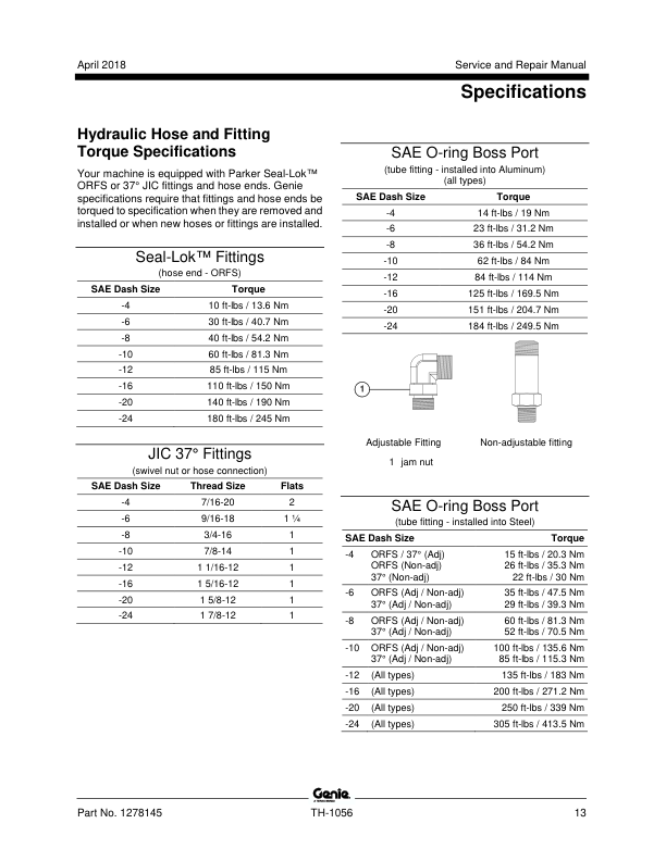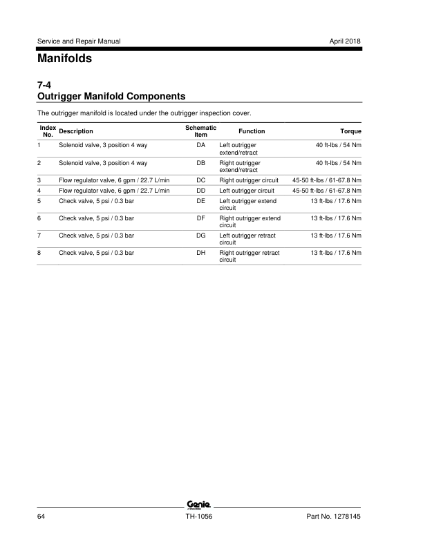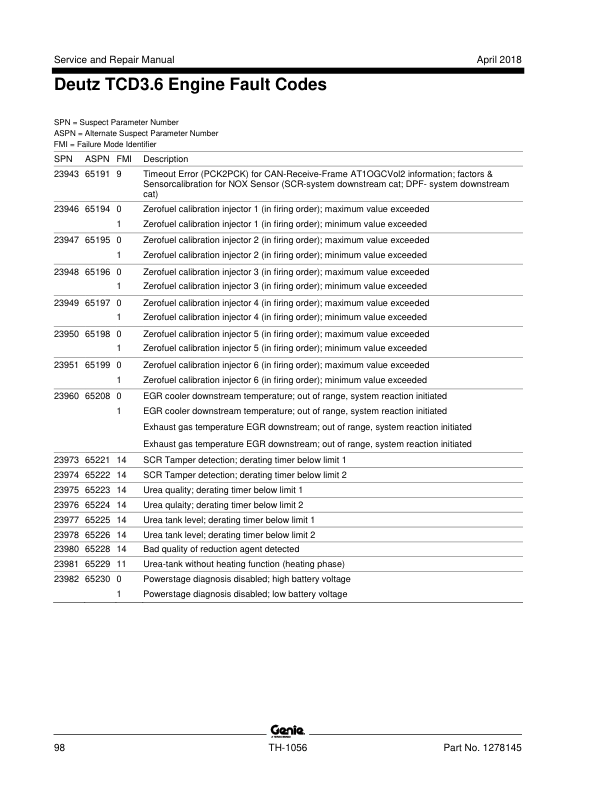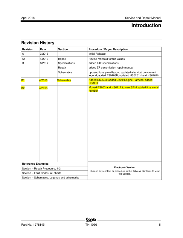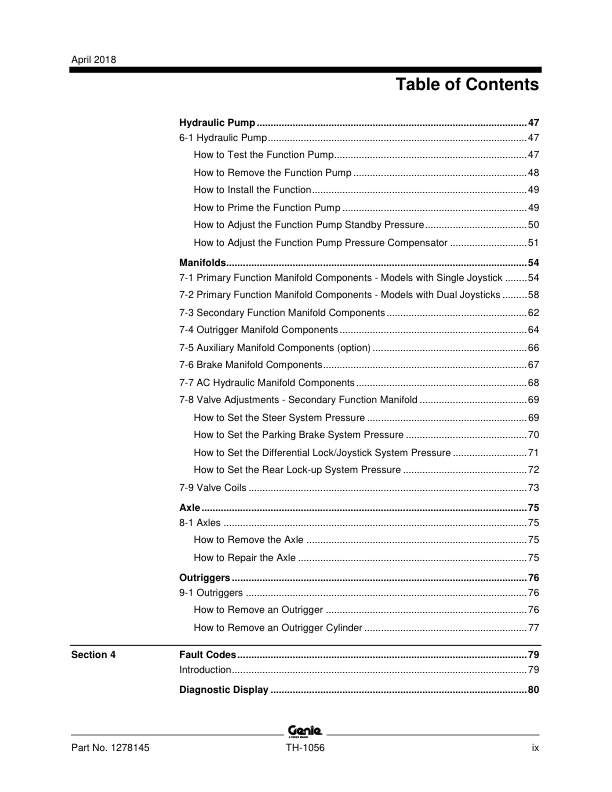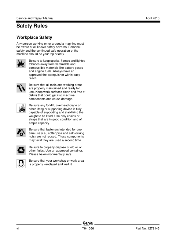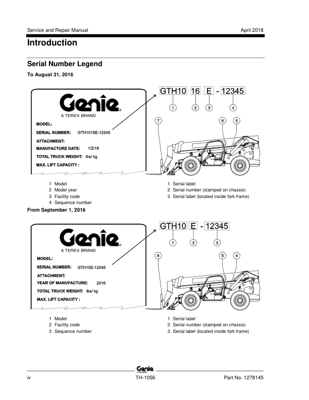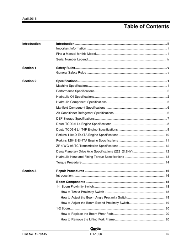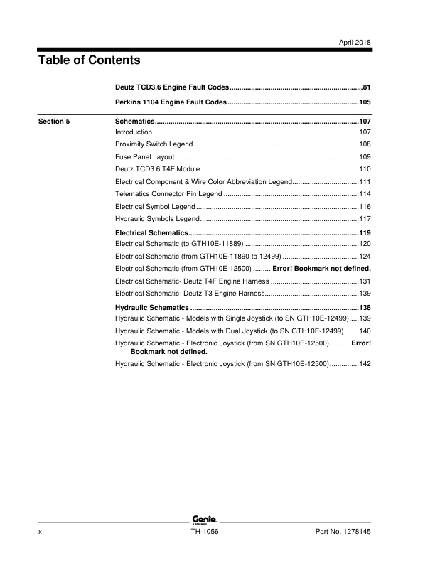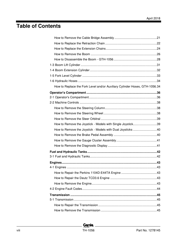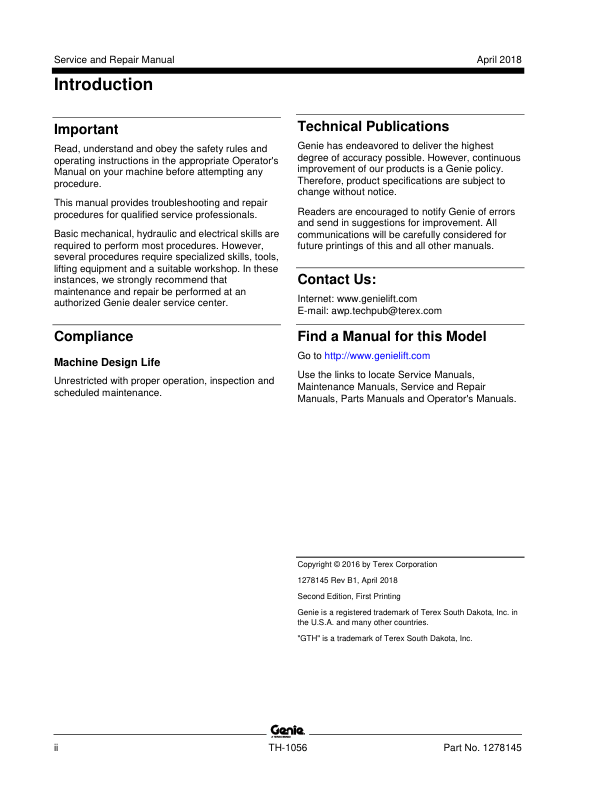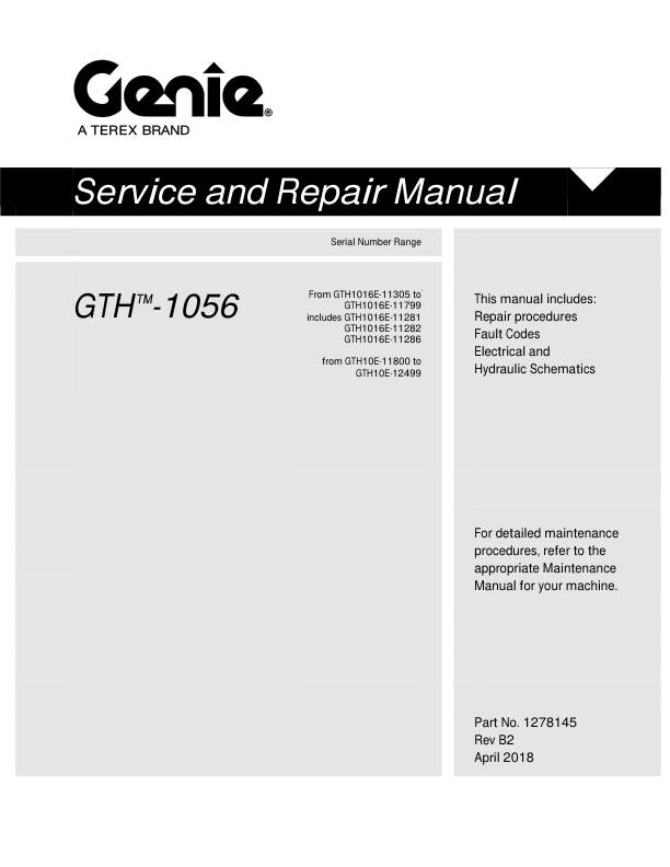 Genie TEREX GTH-1056 Telehandler Service Manual 2018