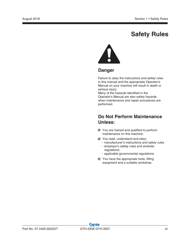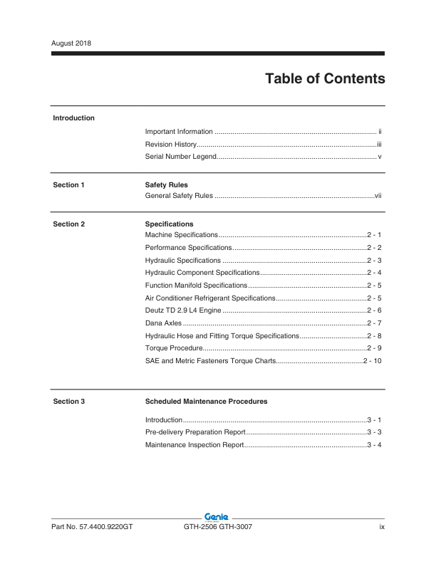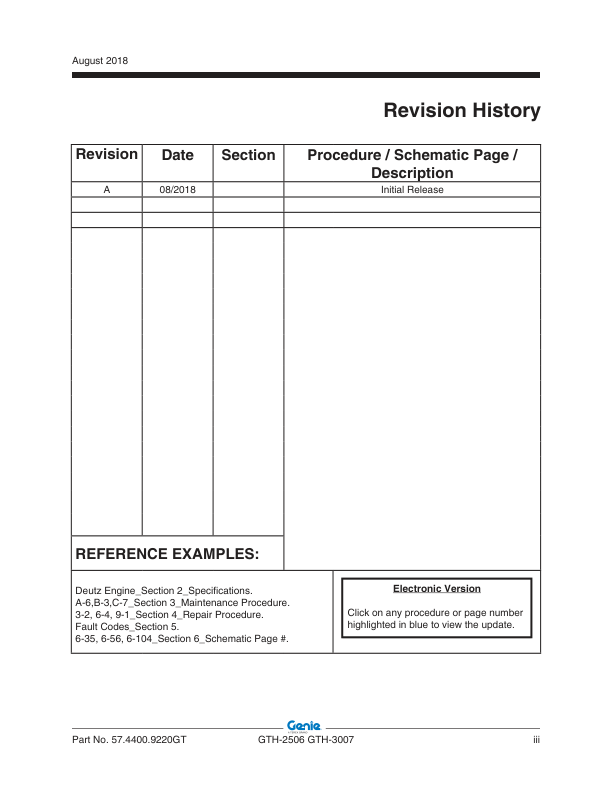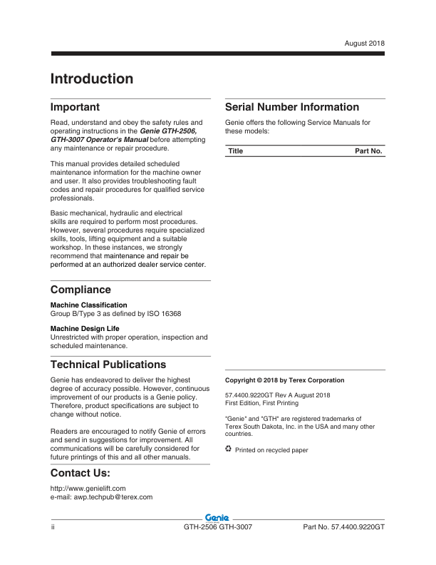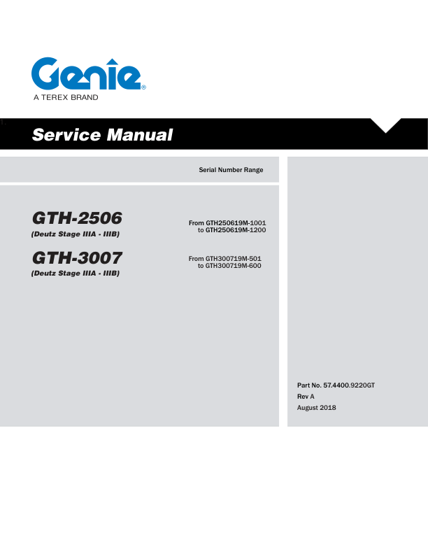 Genie TEREX GTH-2506 GTH-3007 with Deutz Stage IIIA IIIB Telehandler Service Manual