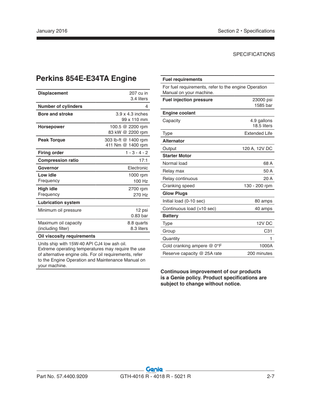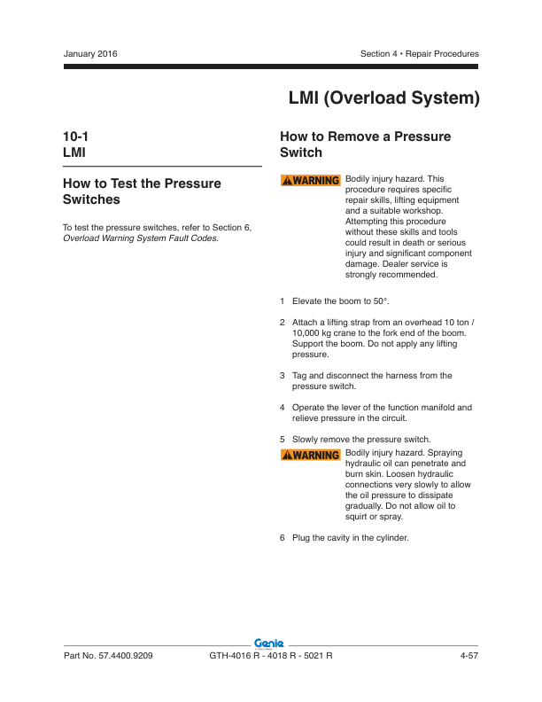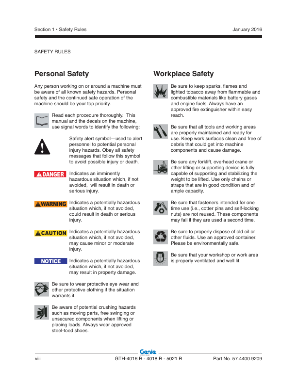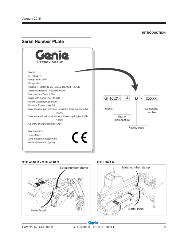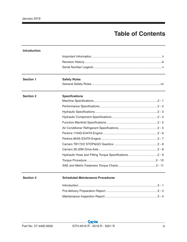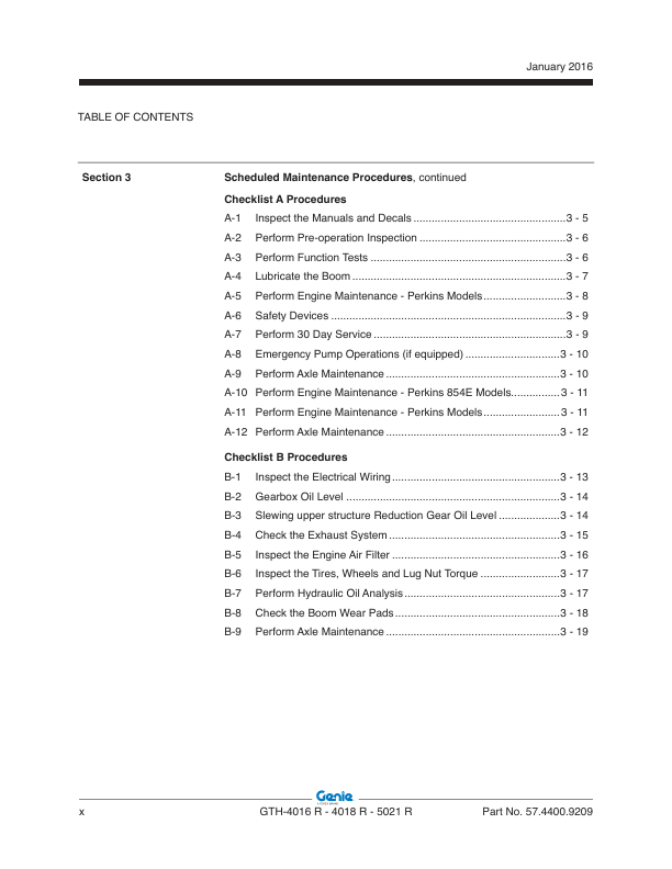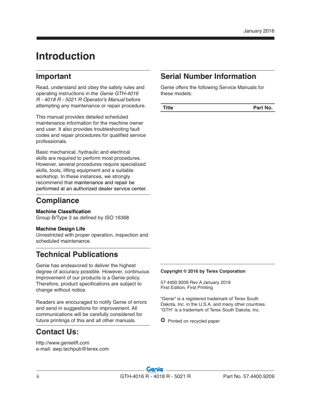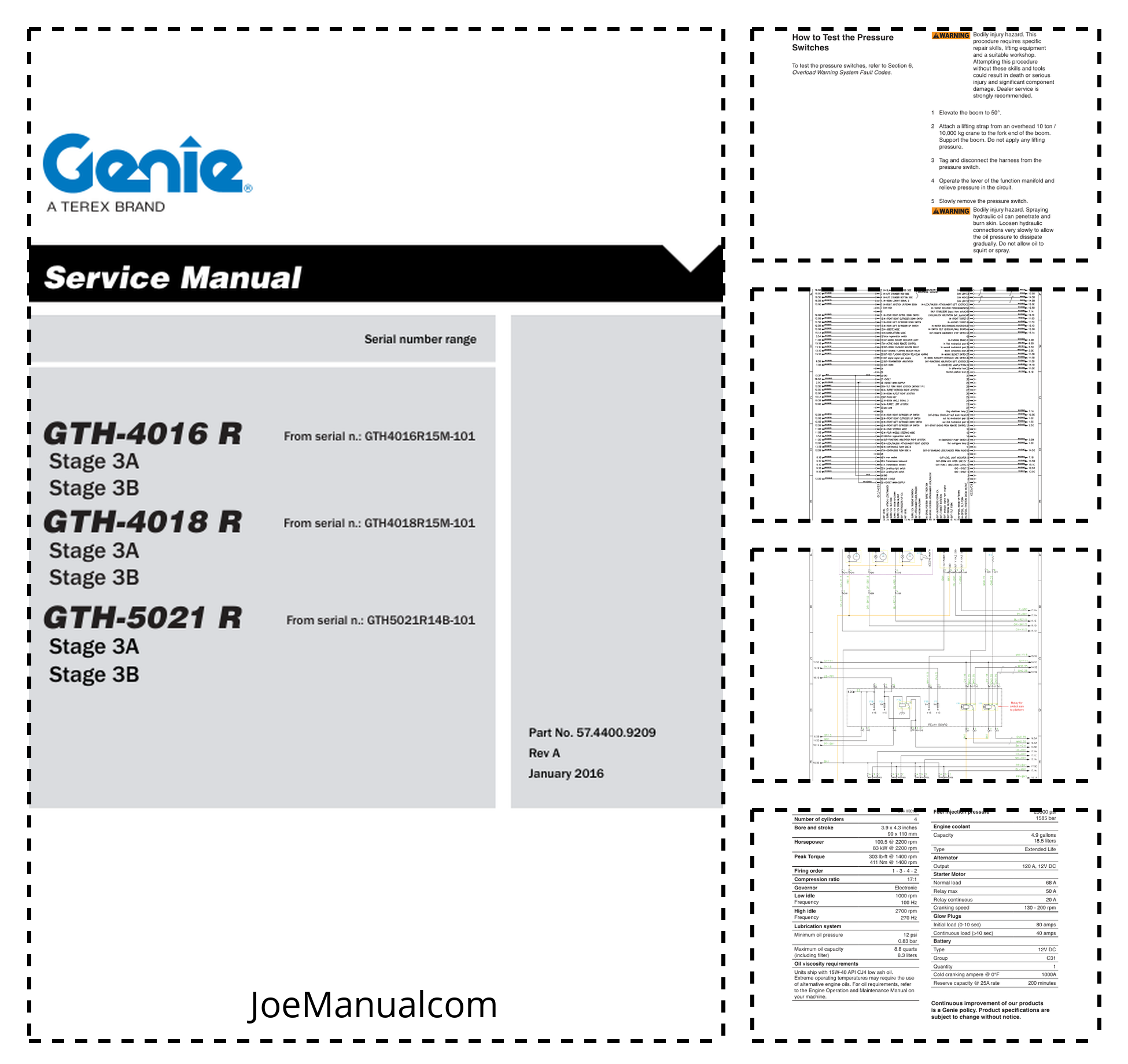 Genie TEREX GTH-4016 R GTH-4018 R GTH-5021 R Stage 3A 3B Telehandler Service Manual 2016