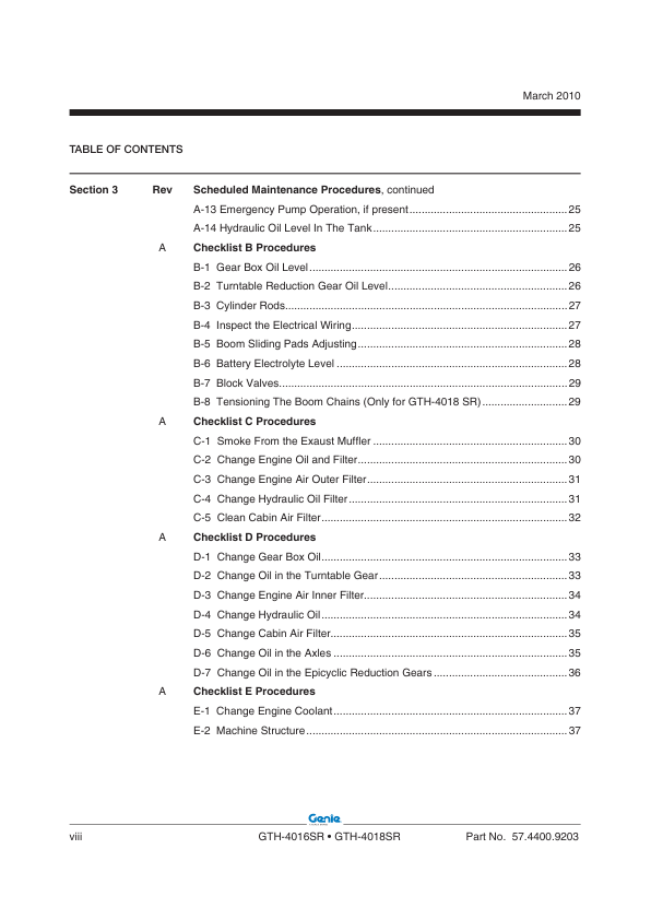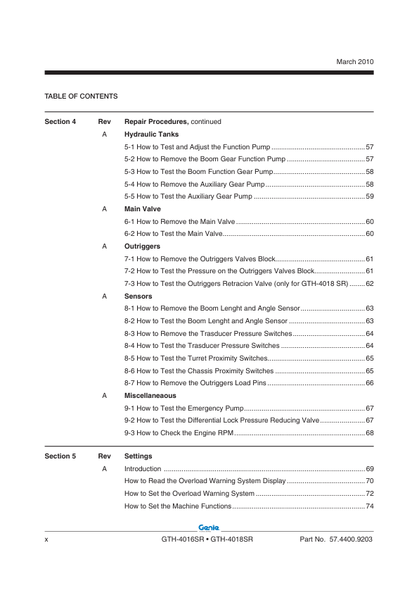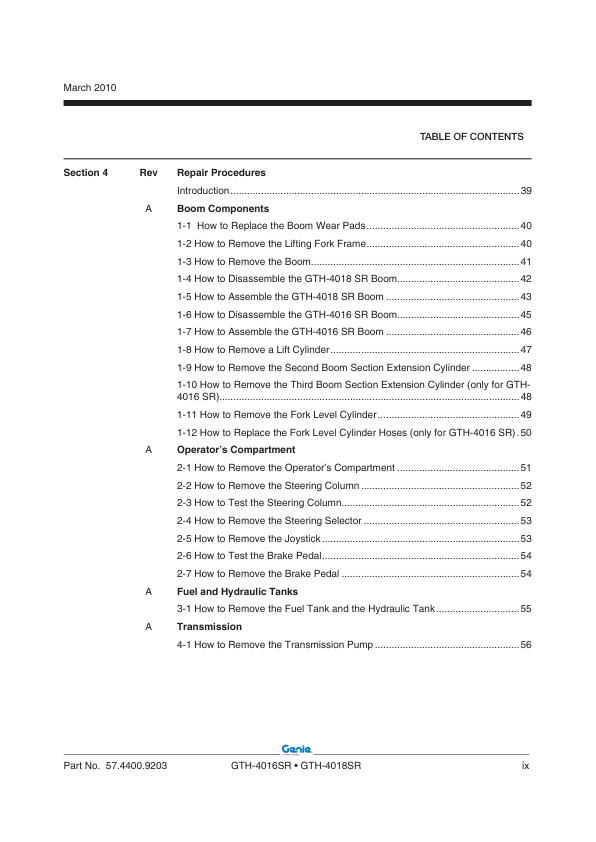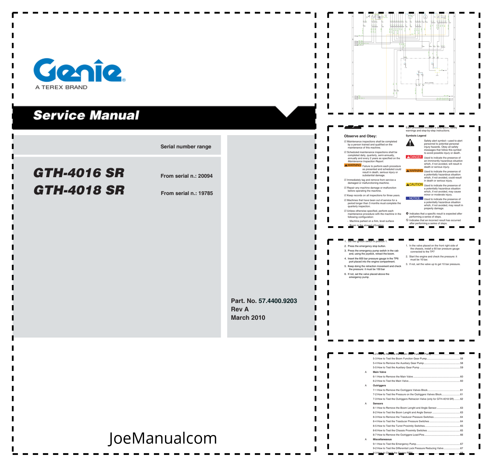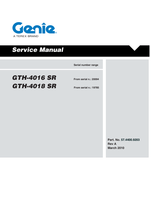 Genie TEREX GTH-4016 SR GTH-4018 SR Telehandler Service Manual 2010