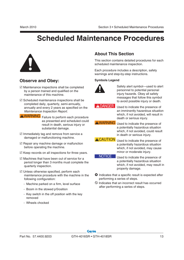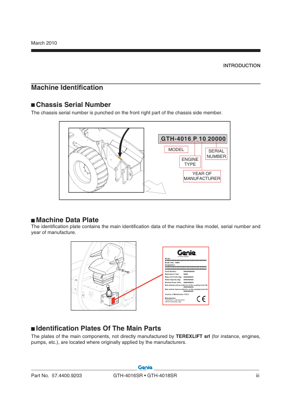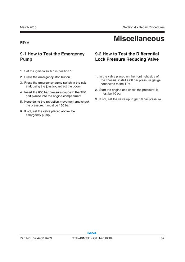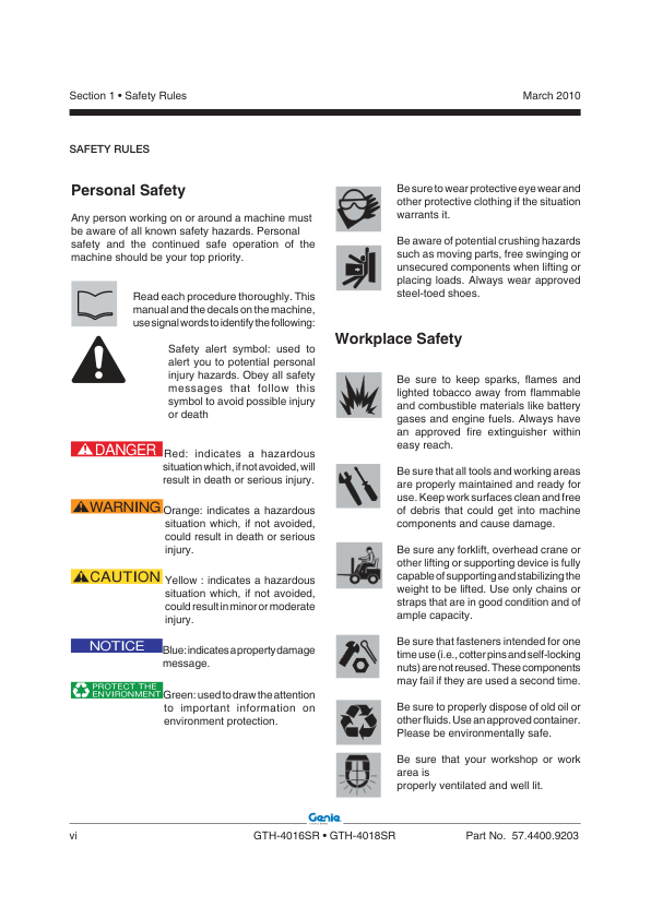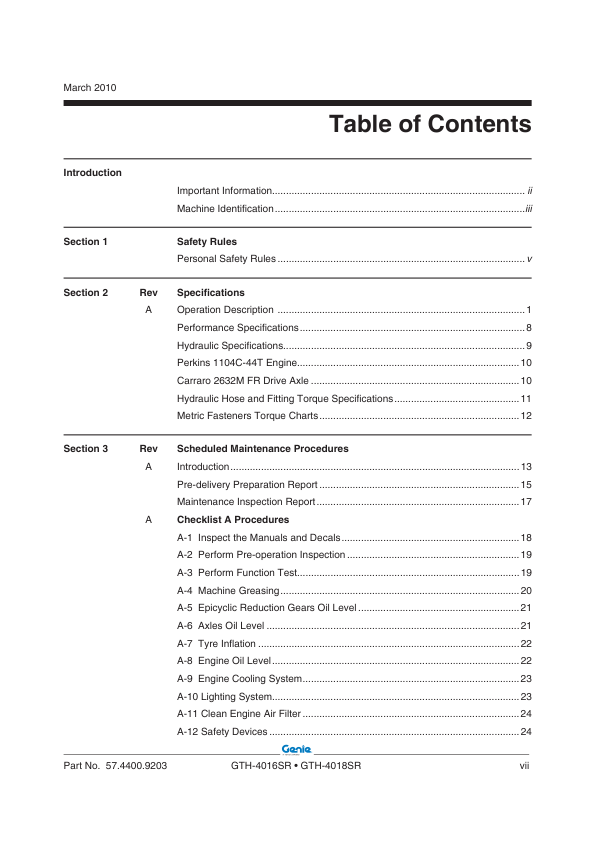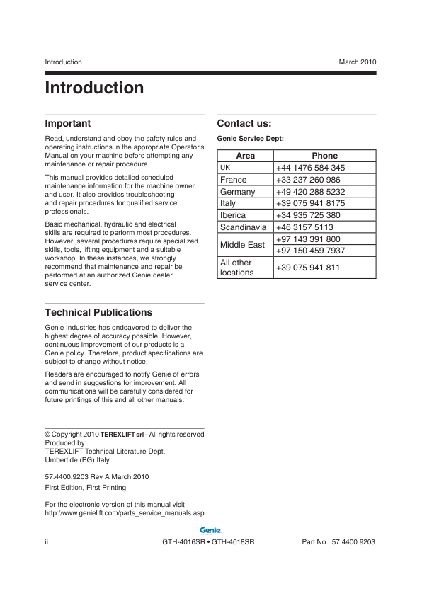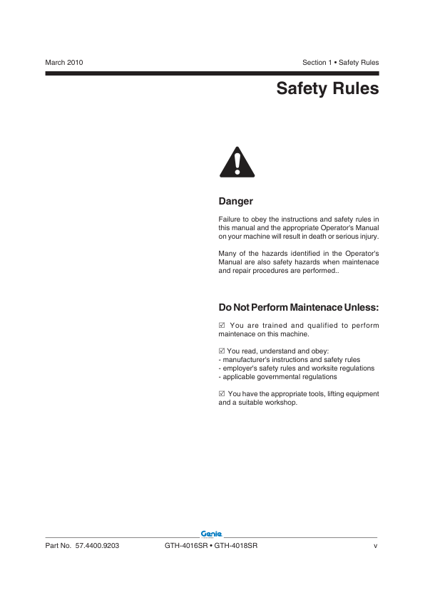 Genie TEREX GTH-4016 SR GTH-4018 SR Telehandler Service Manual 2010