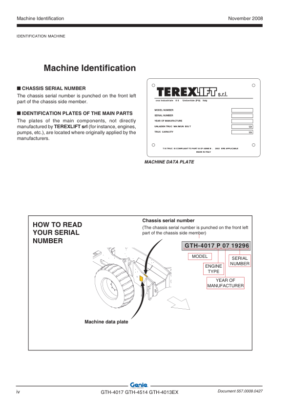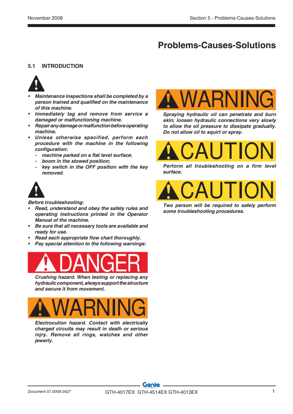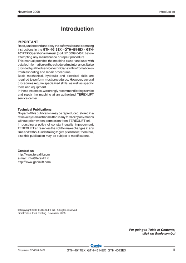 Genie TEREX GTH-4017 EX GTH-4514 EX GTH-4013 EX Telehandlers Service Manual