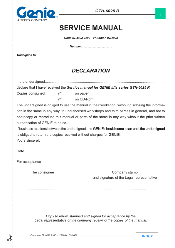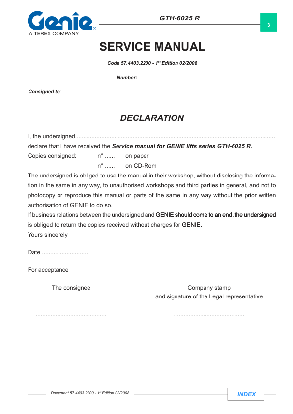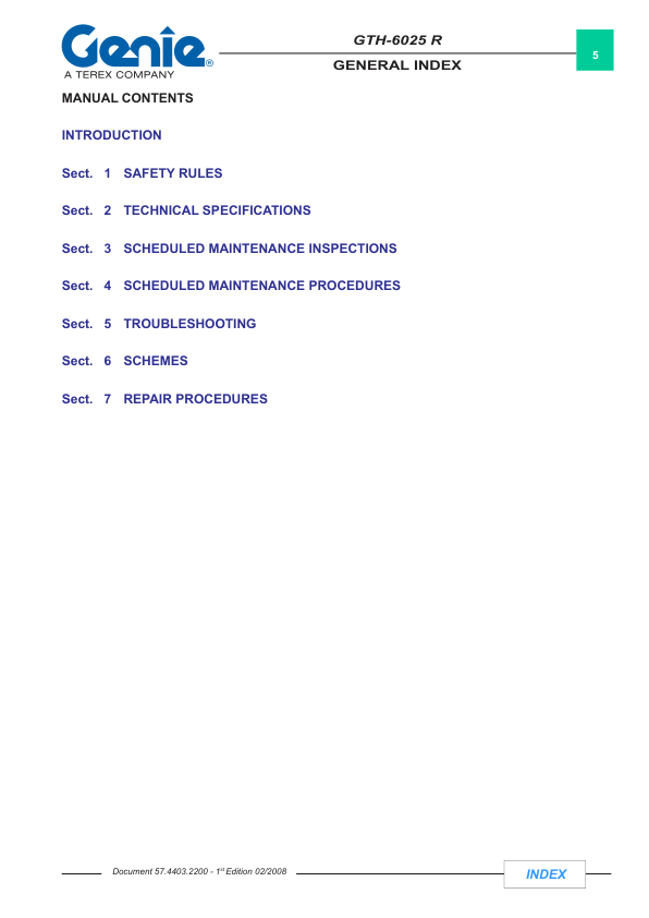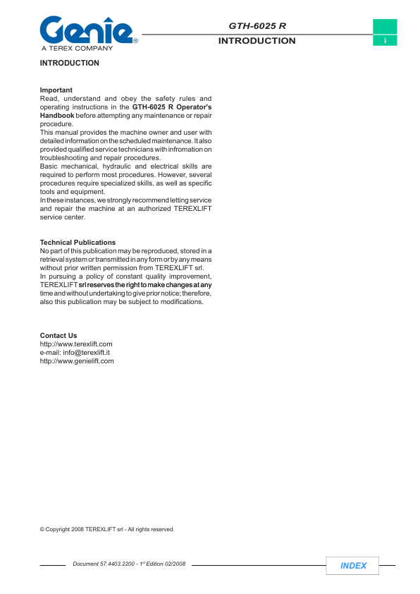 Genie TEREX GTH-6025 R Telescopic Crane Service Manual 2008