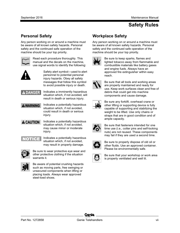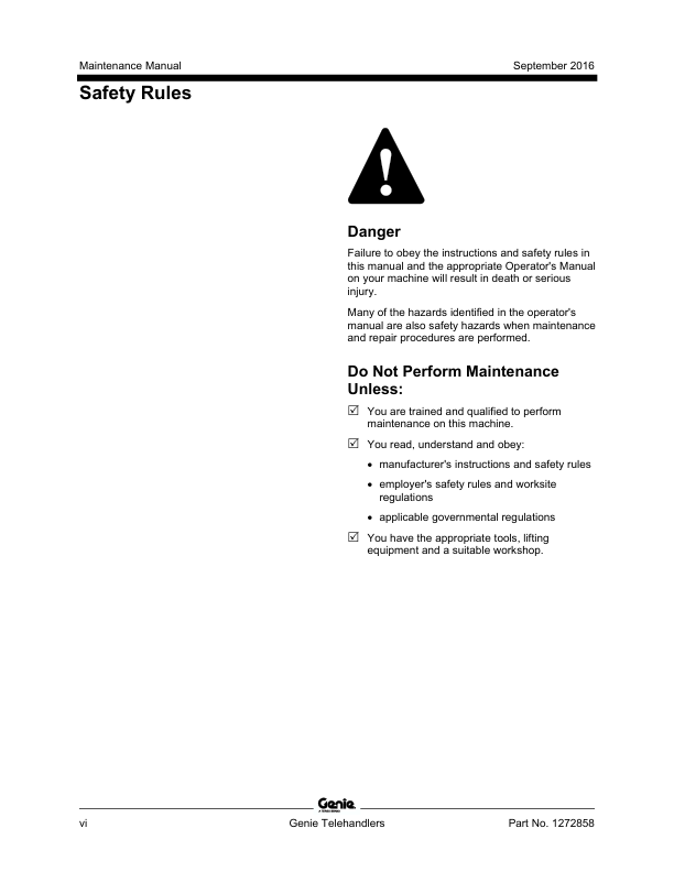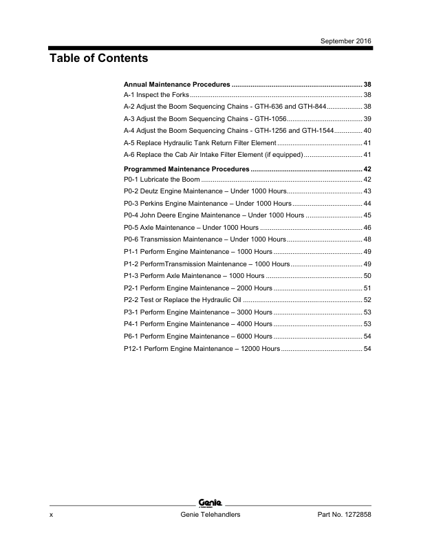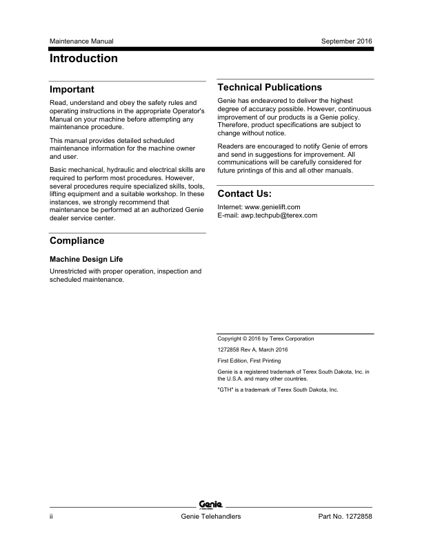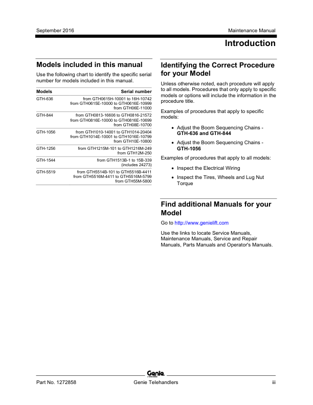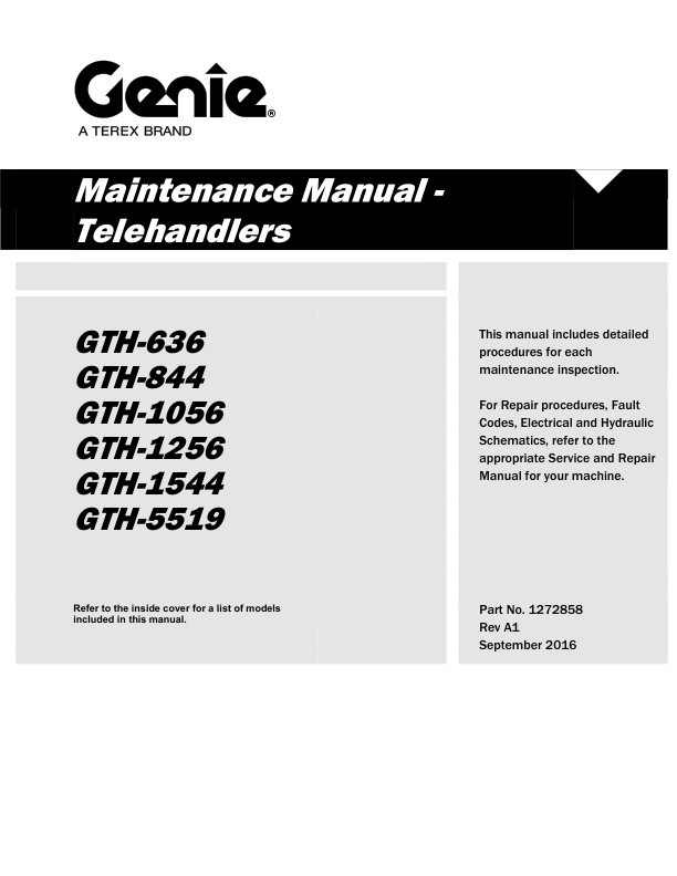 Genie TEREX GTH-636 844 1056 1256 1544 5519 Telehandler Maintenance Manual