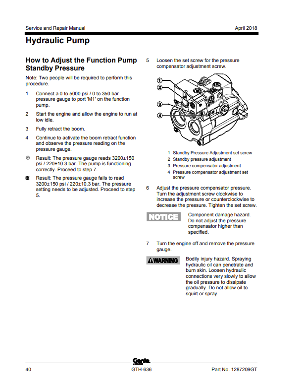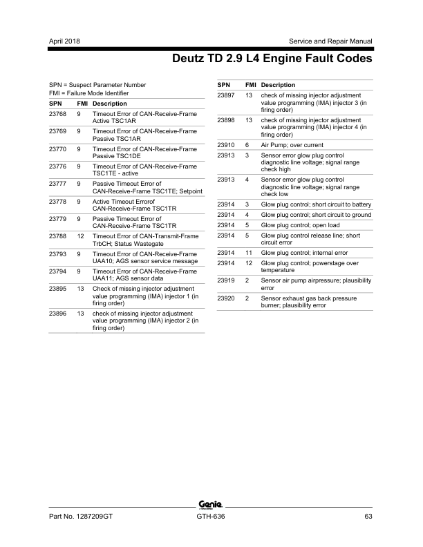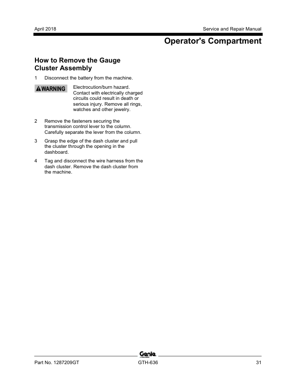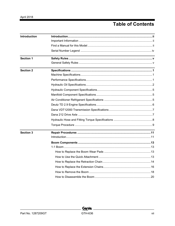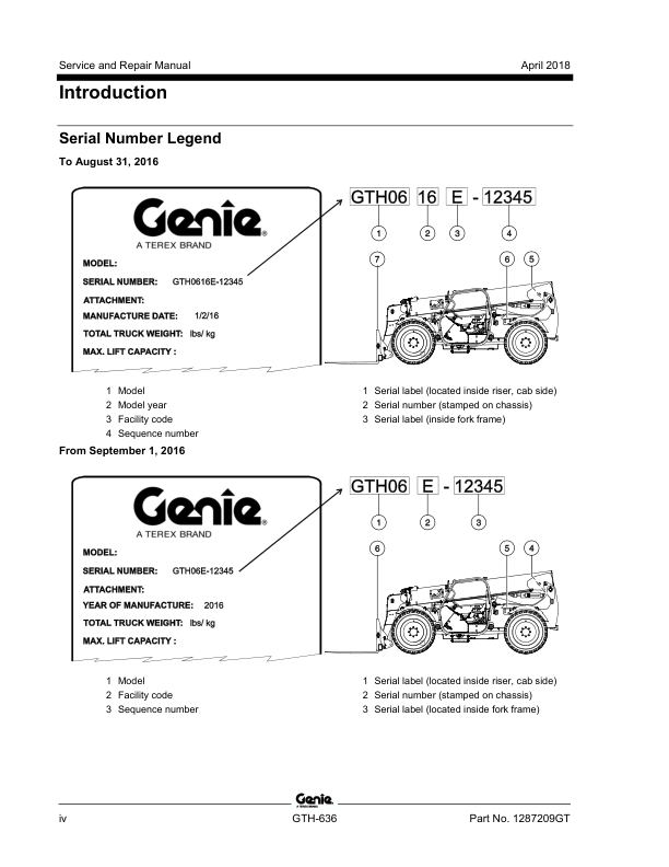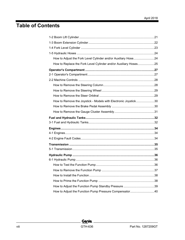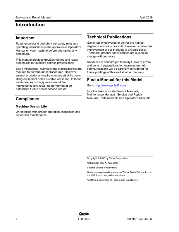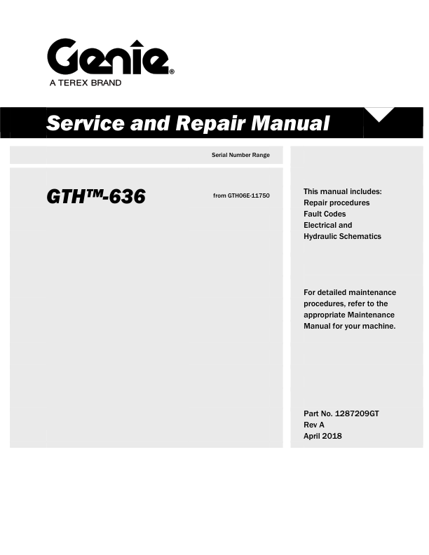 Genie TEREX GTH-636 Telehandler Service Manual from SN GTH06E-11750