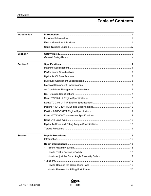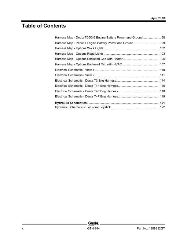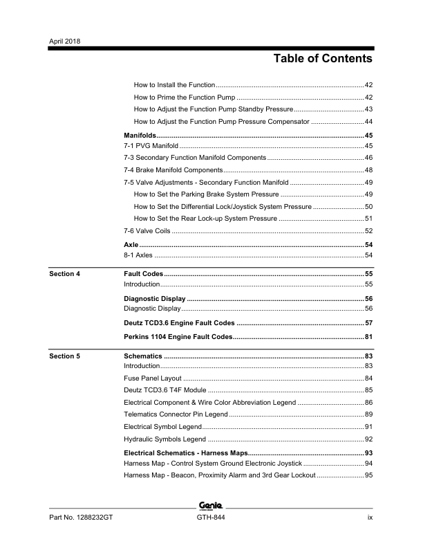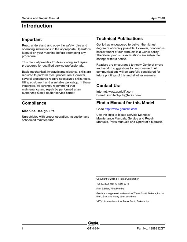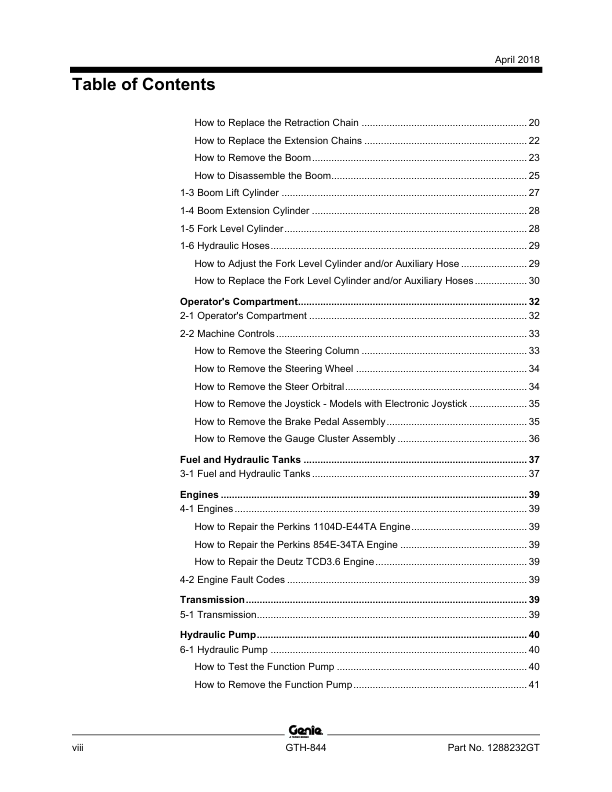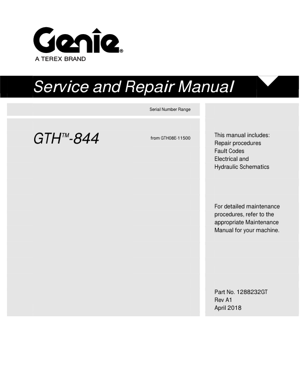 Genie TEREX GTH-844 Telehandler Service Manual from SN GTH08E-11500
