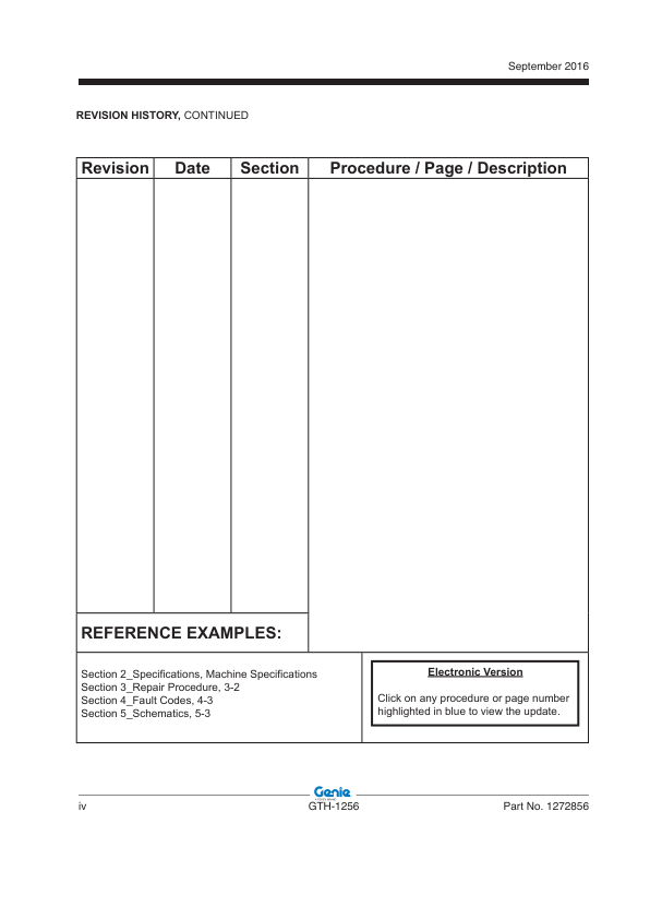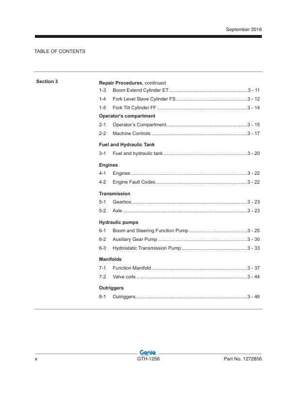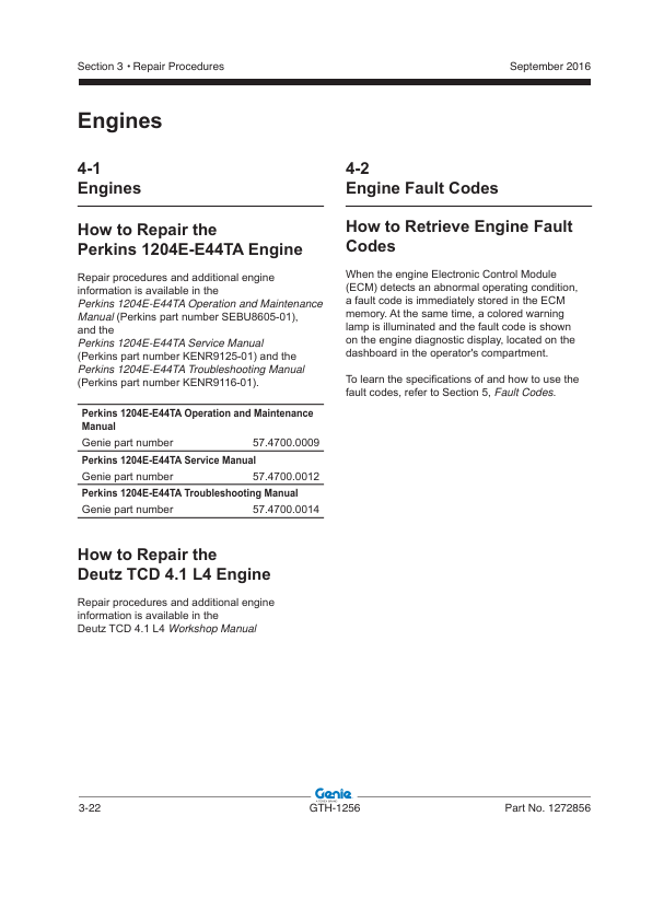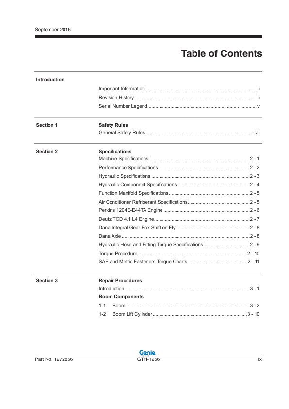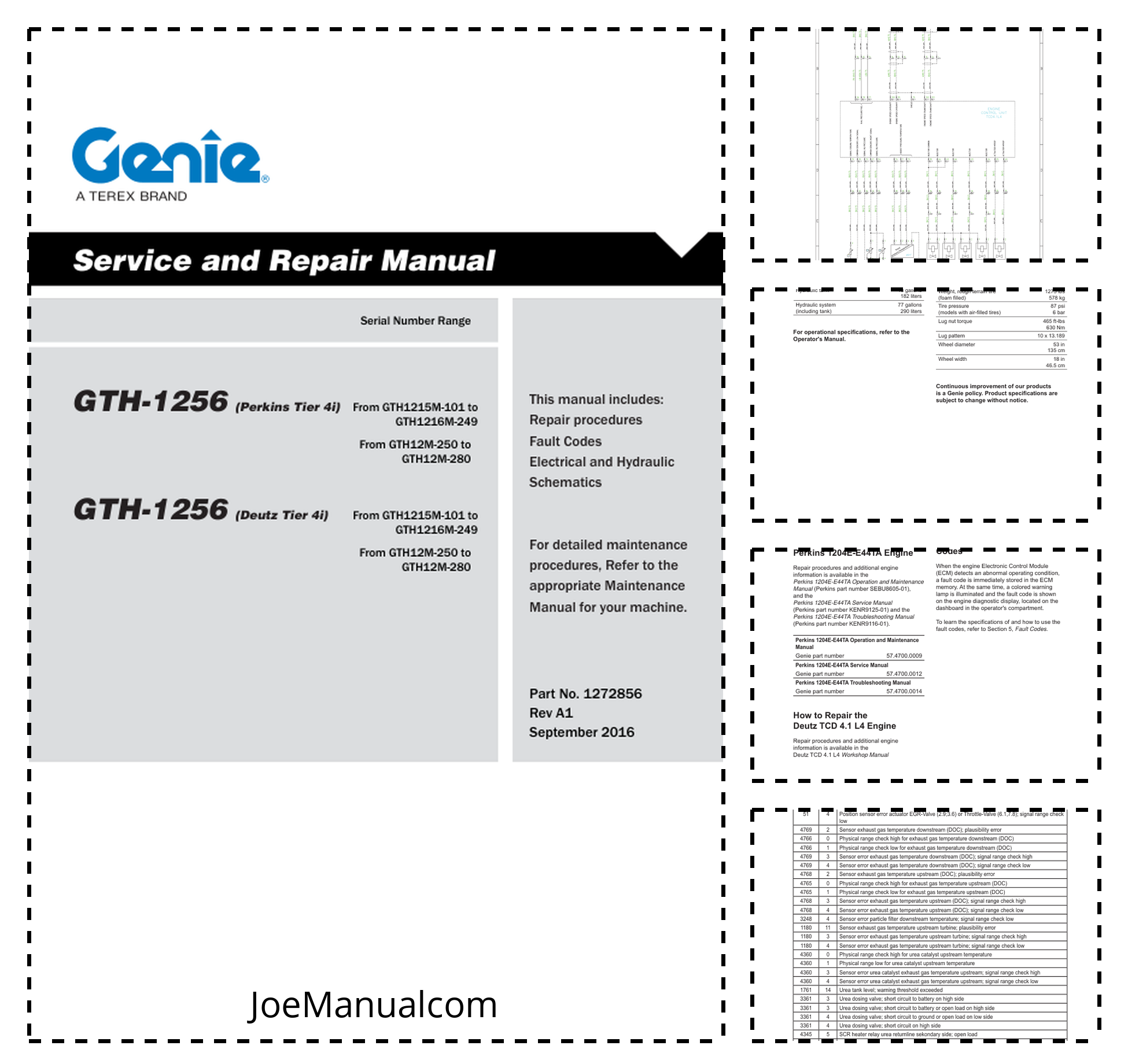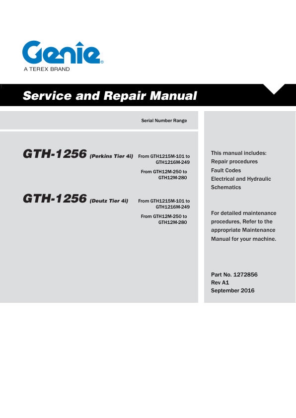 Genie TEREX GTX-1256 GTX1256 with Perkins and Deutz 4I Telehandler Service Manual 2016