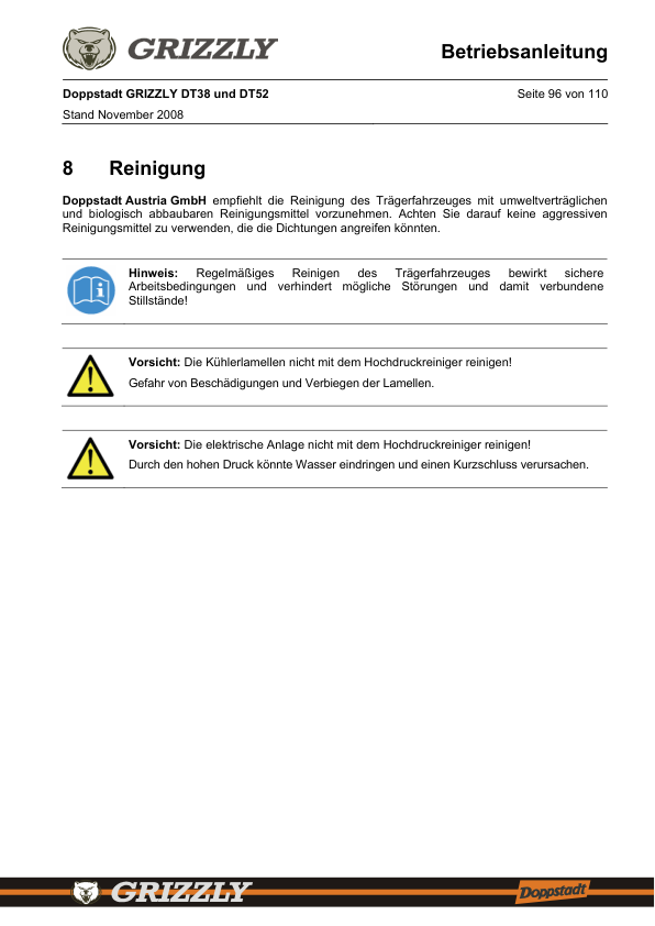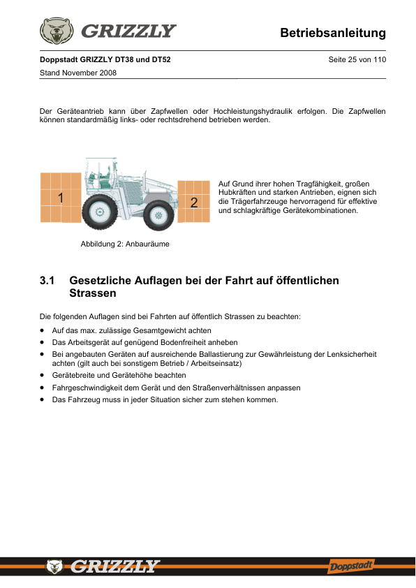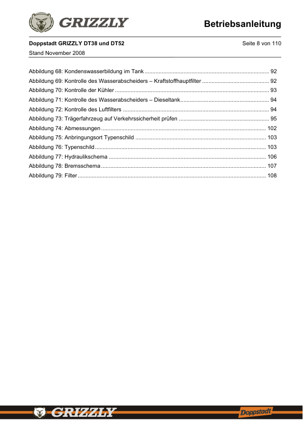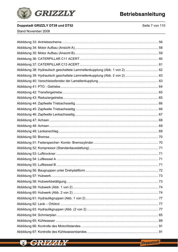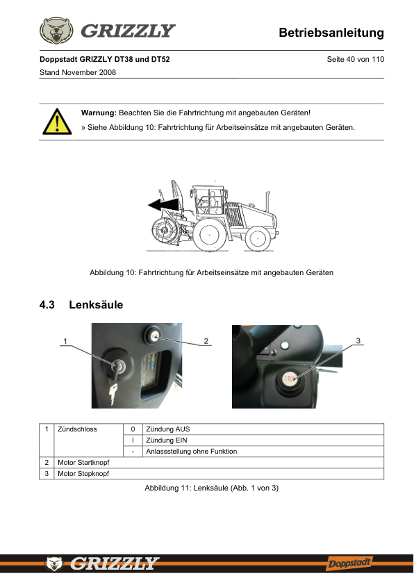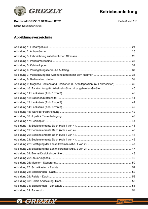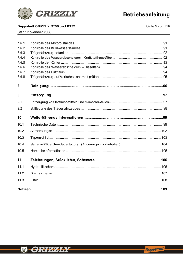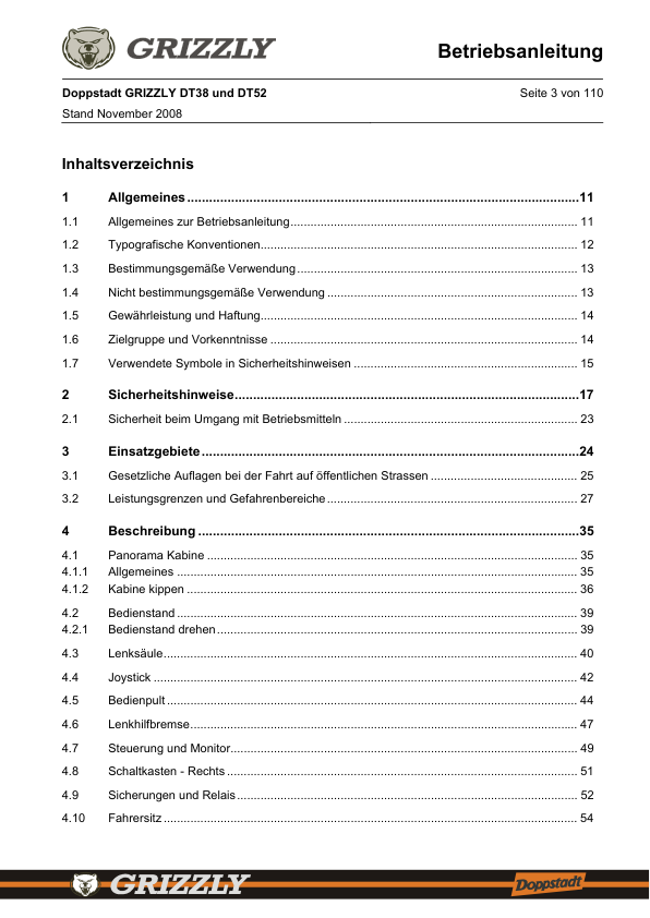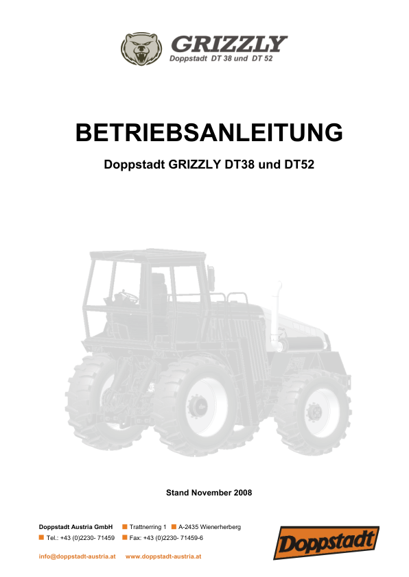 Grizzly DT38 DT52 Skid Steer Loader Operators Manual DE