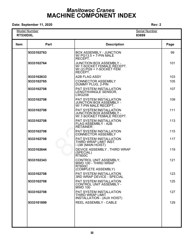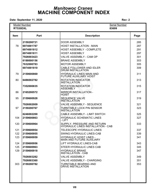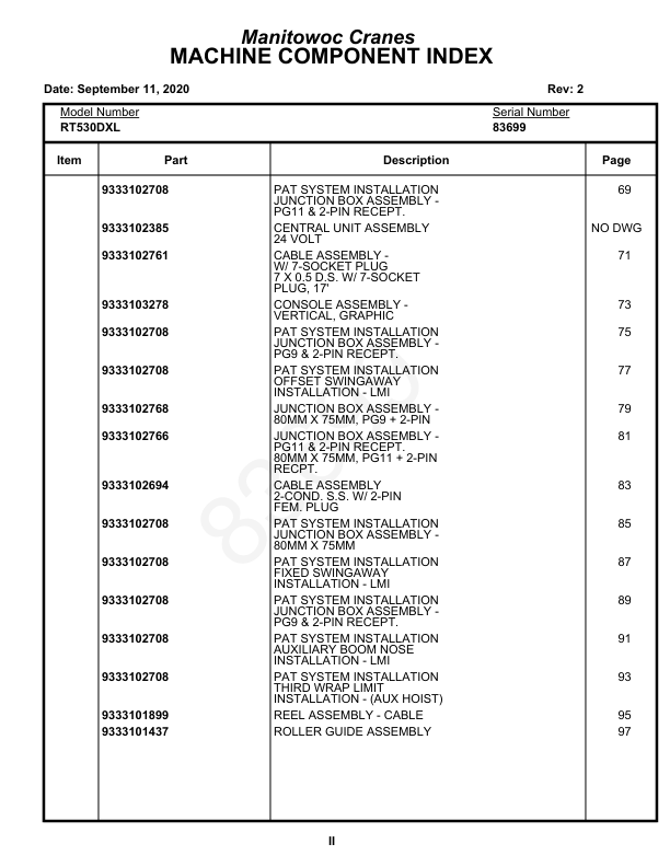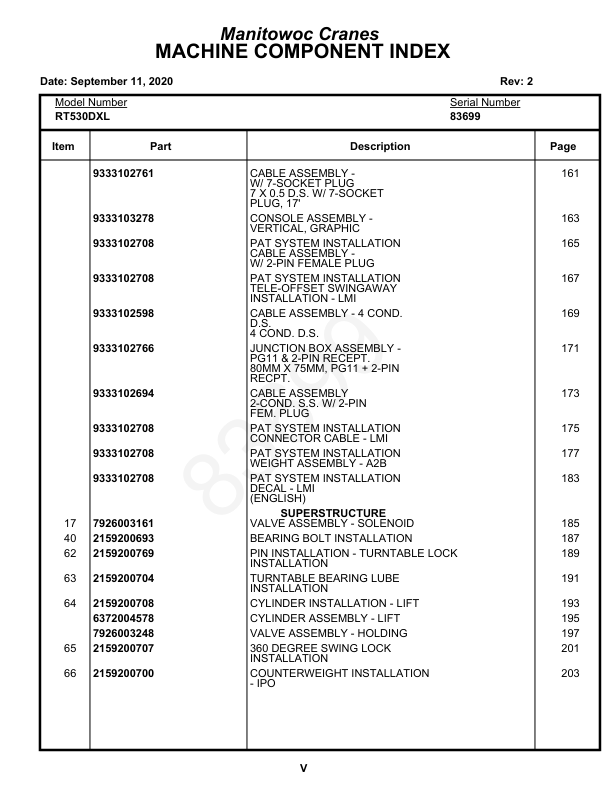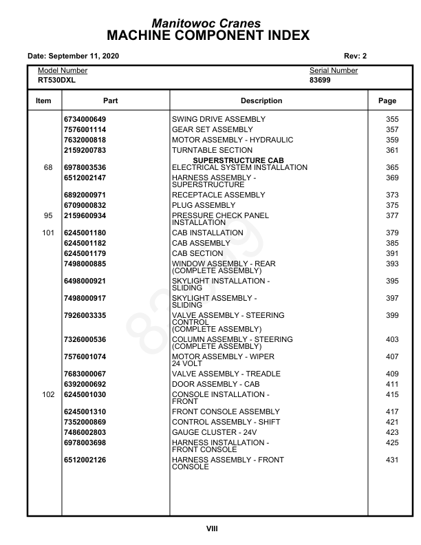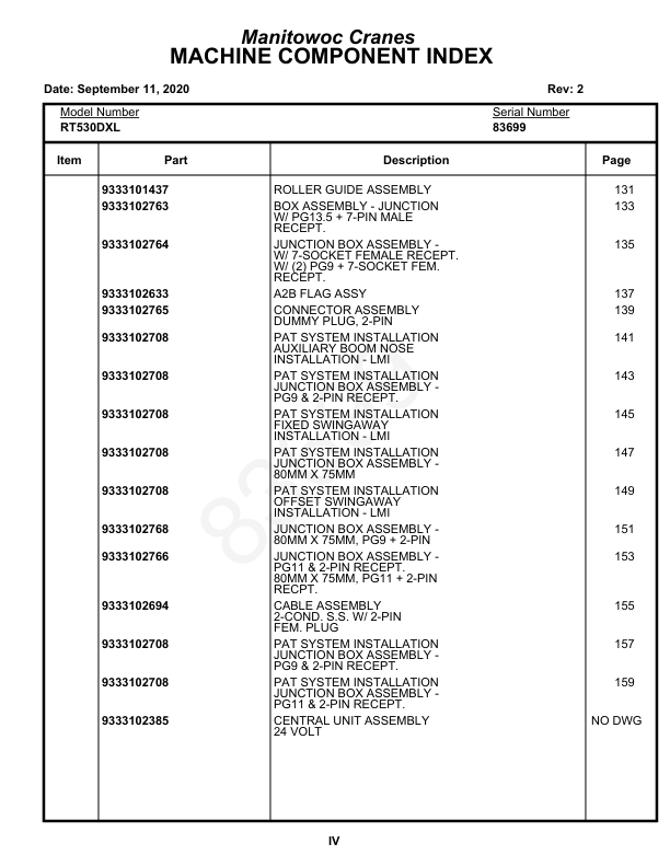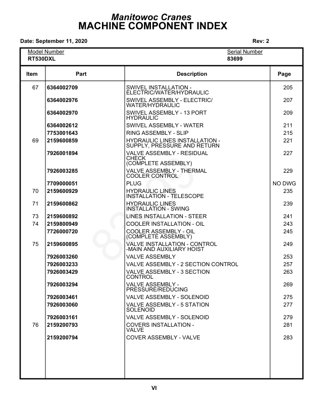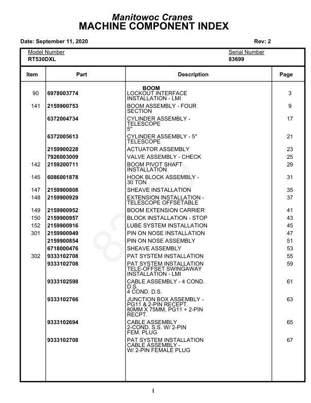 Grove Manitowoc RT530DXL Crane Parts Catalog