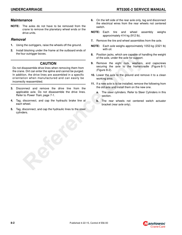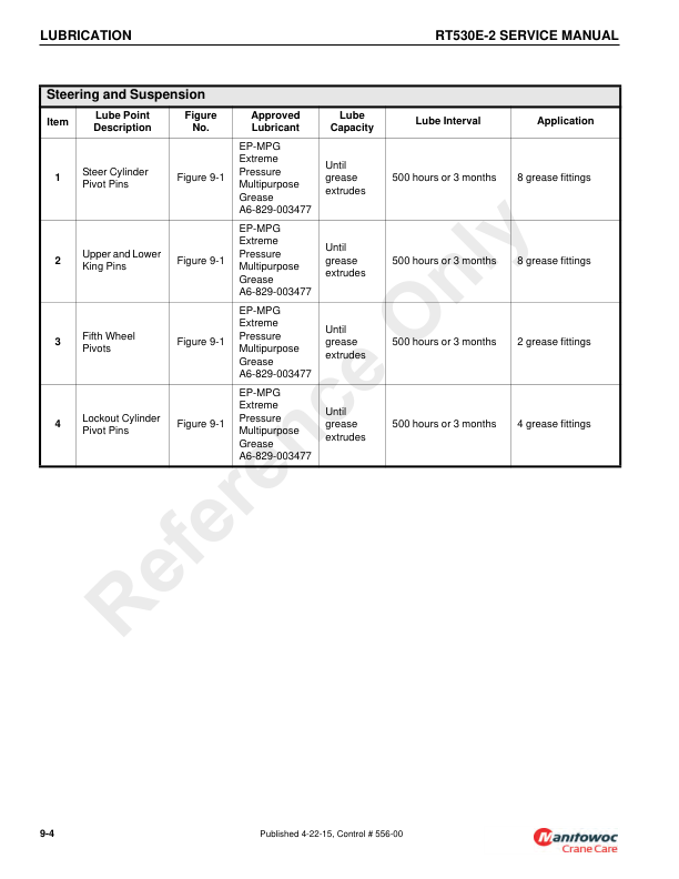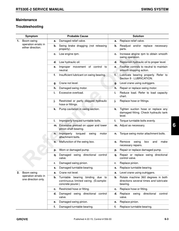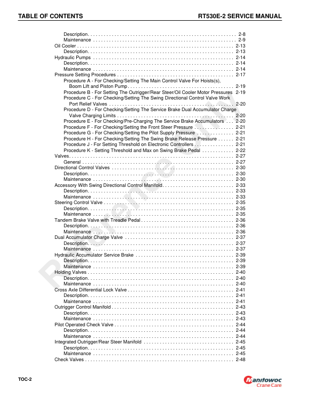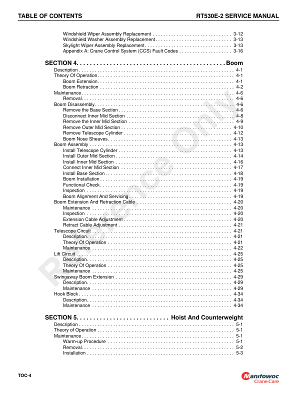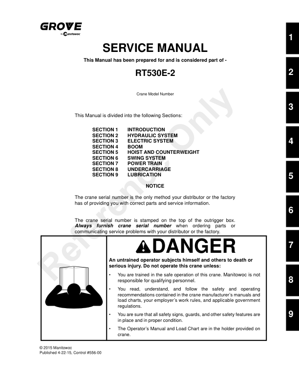 Grove Manitowoc RT530E-2 Crane Service Maintenance Manual