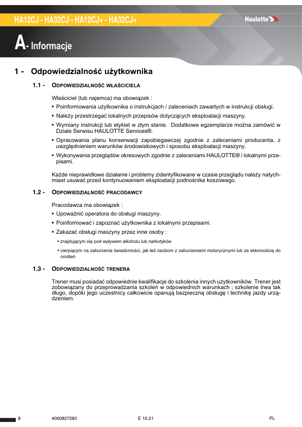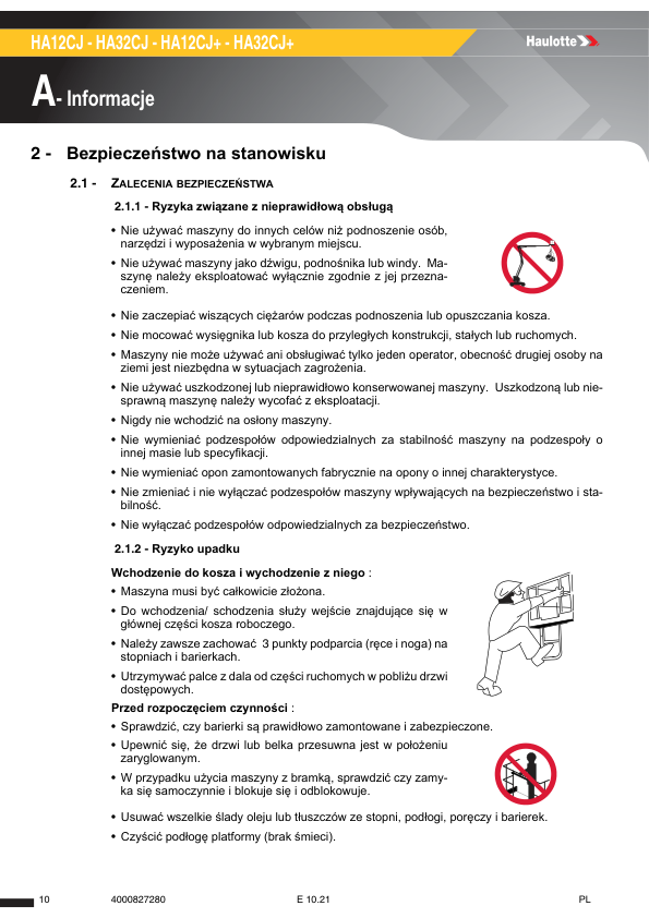 Haulotte HA12CJ HA32CJ HA12CJ PLUS HA32CJ PLUS Operators Manual PL