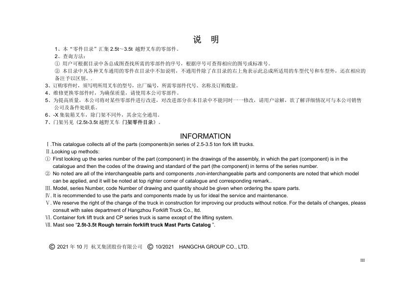 HC 2.5T 3.5T Rough Terrain Forklift Truck Parts Catalog