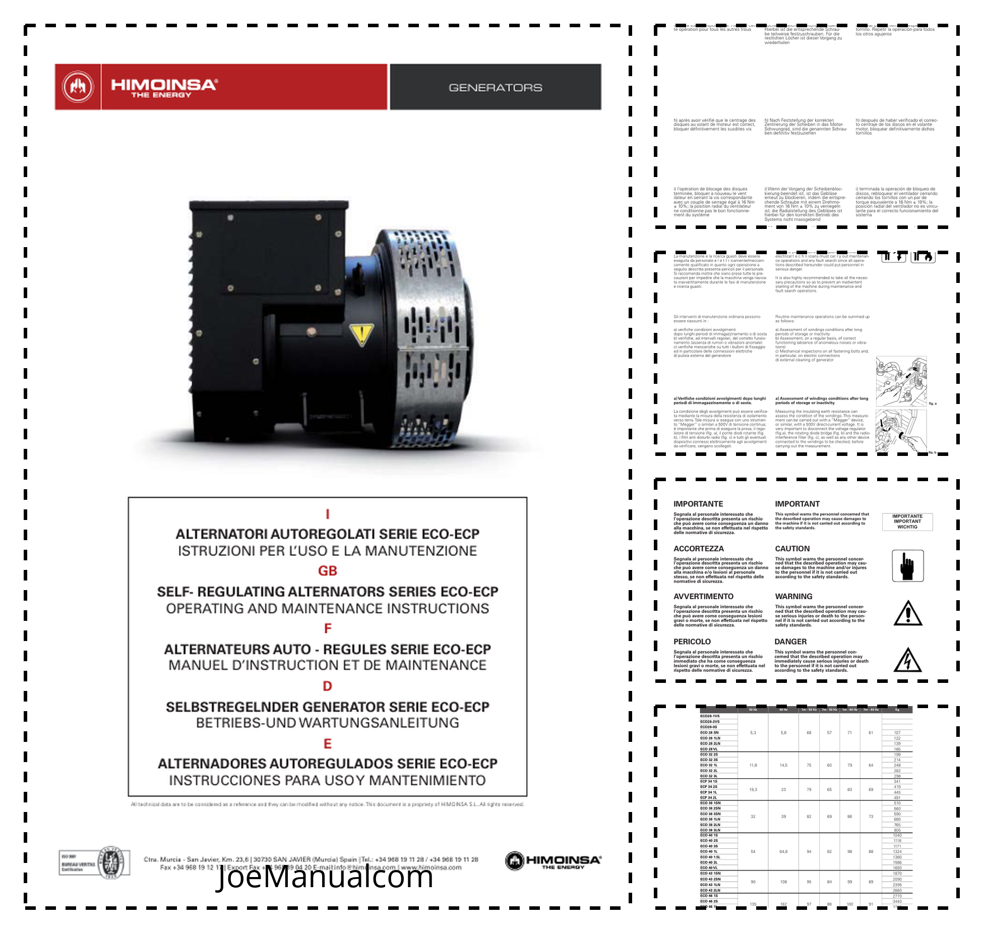Himoinsa ECO ECP Self Regulating Alternators Operating and Maintenance Manual 9806/4750