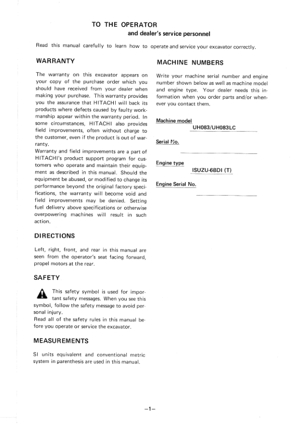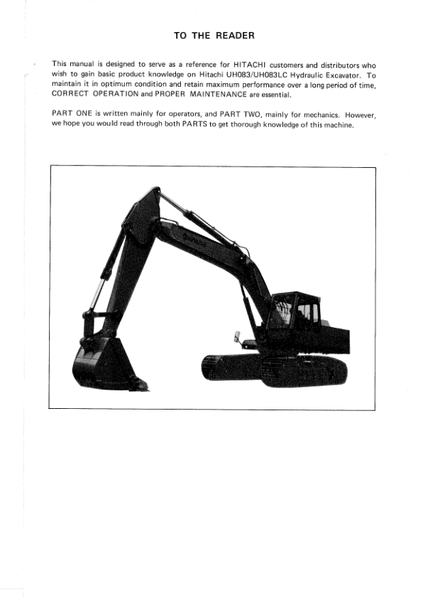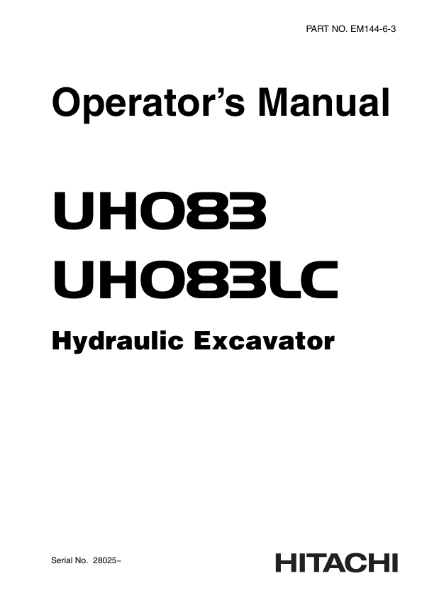 Hitachi UH083 UH083LC Excavator Operators Manual