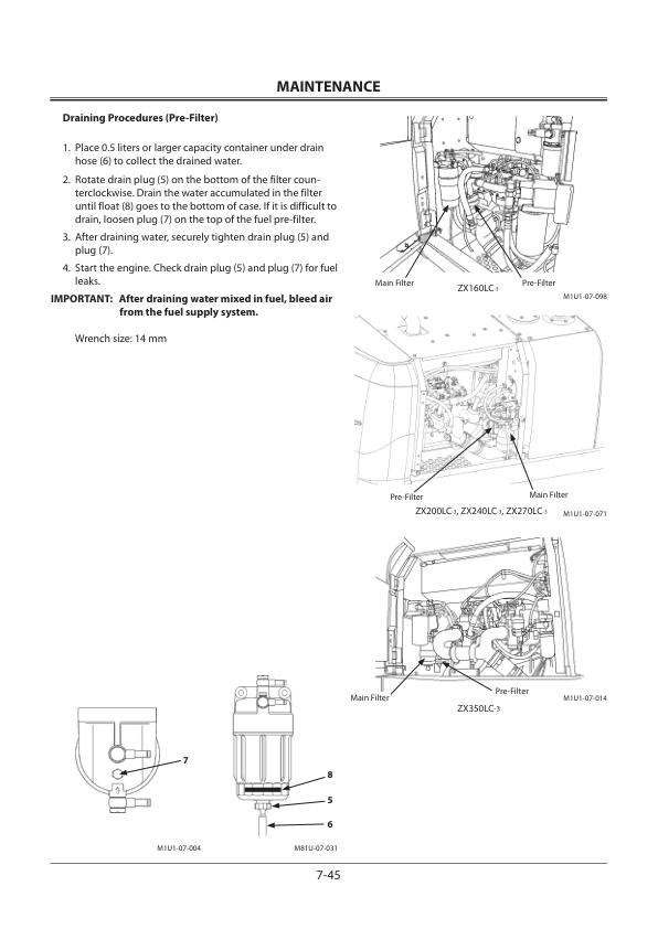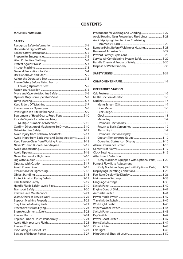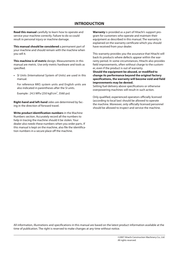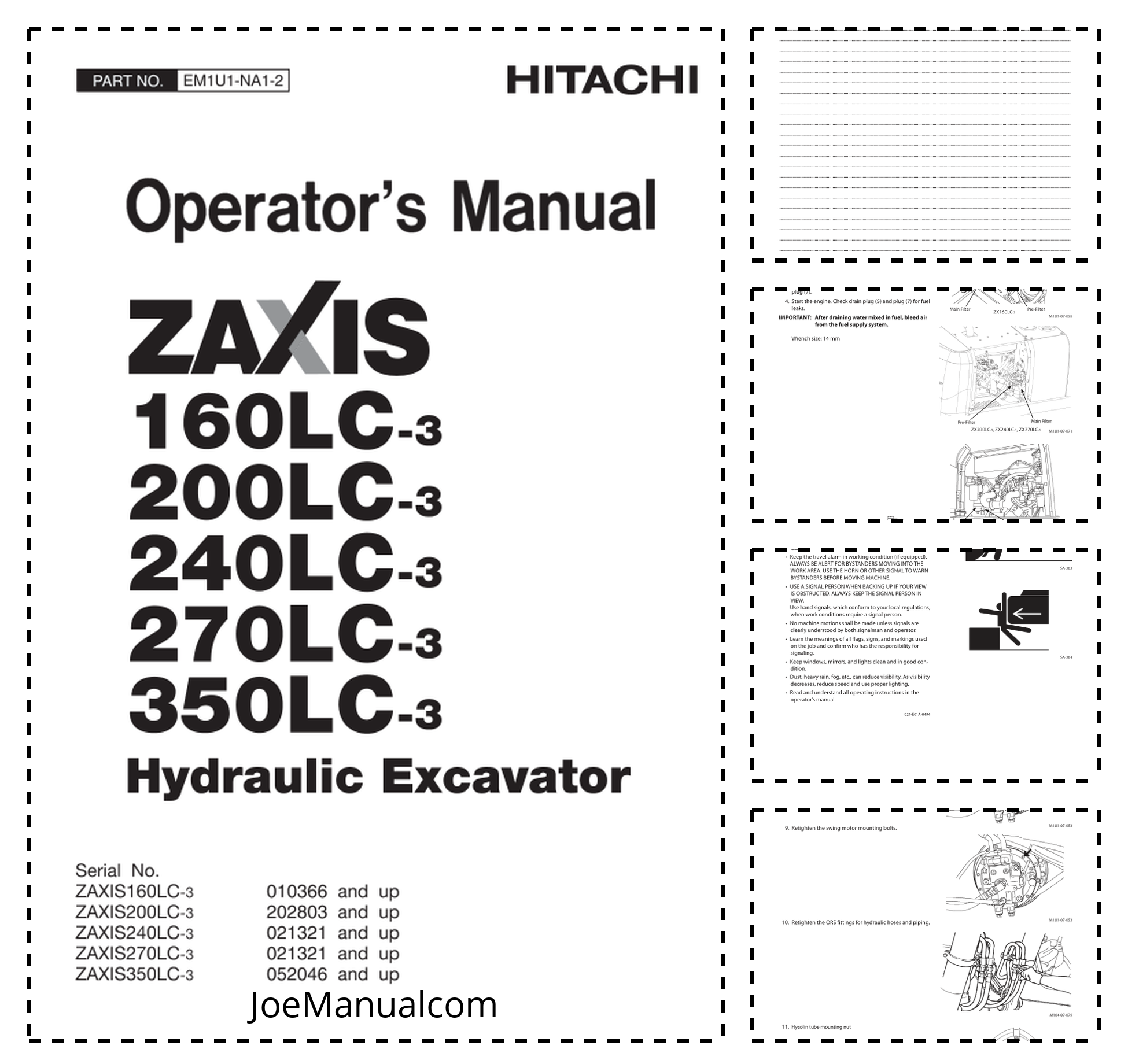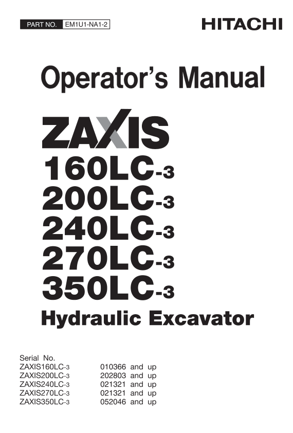 Hitachi Zaxis 160LC-3 200LC-3 240LC-3 270LC-3 350LC-3 Excavator Operators Manual
