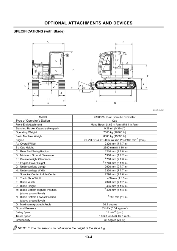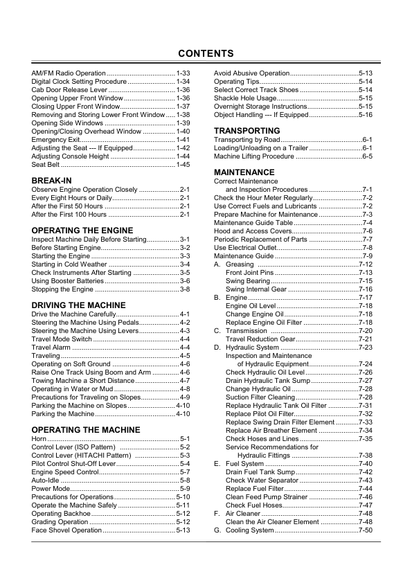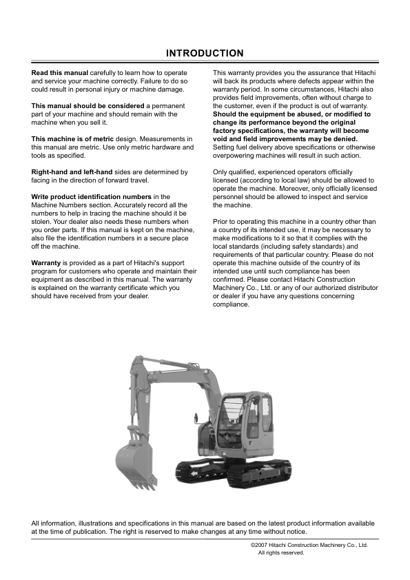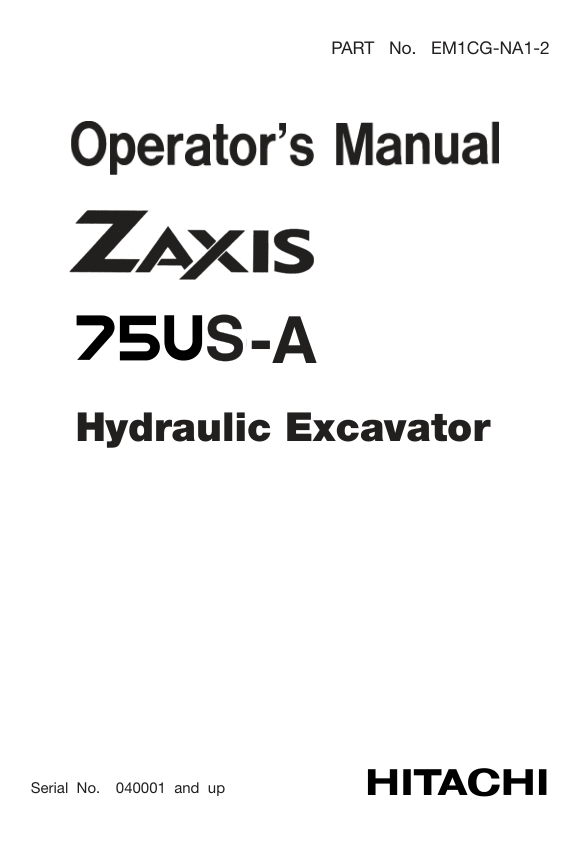 Hitachi Zaxis 75US-A Excavator Operators Manual