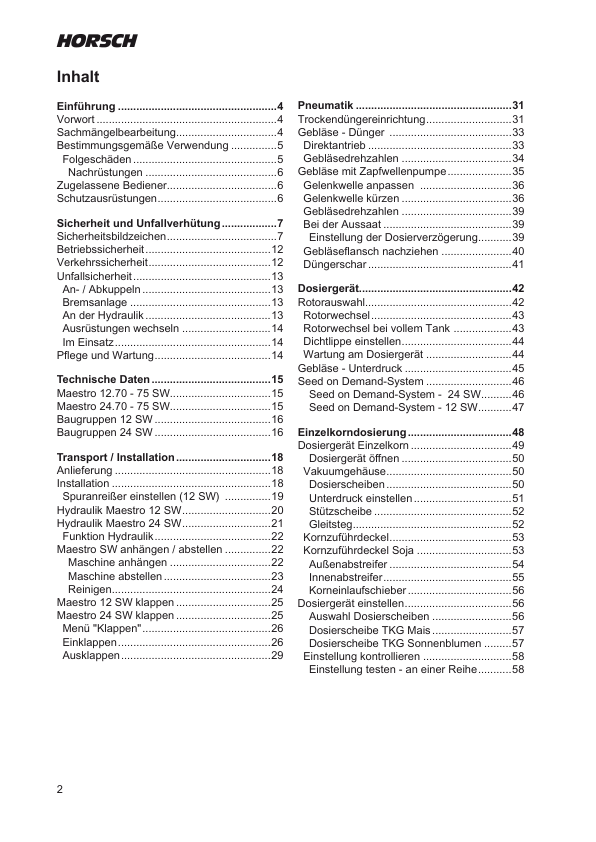 HORSCH MAESTRO 12 24 SW Planter Operators Manual DE