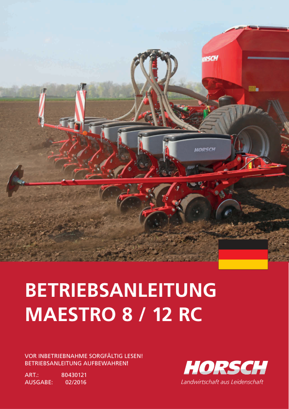 HORSCH MAESTRO 8 12 RC Planter Operators Manual