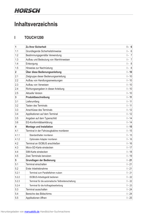 HORSCH TOUCH 1200 Terminal Operators Manual