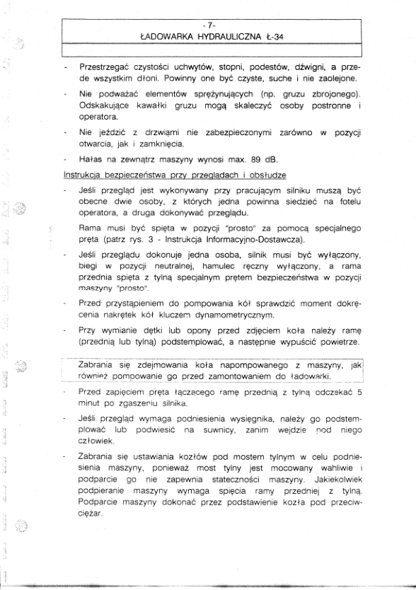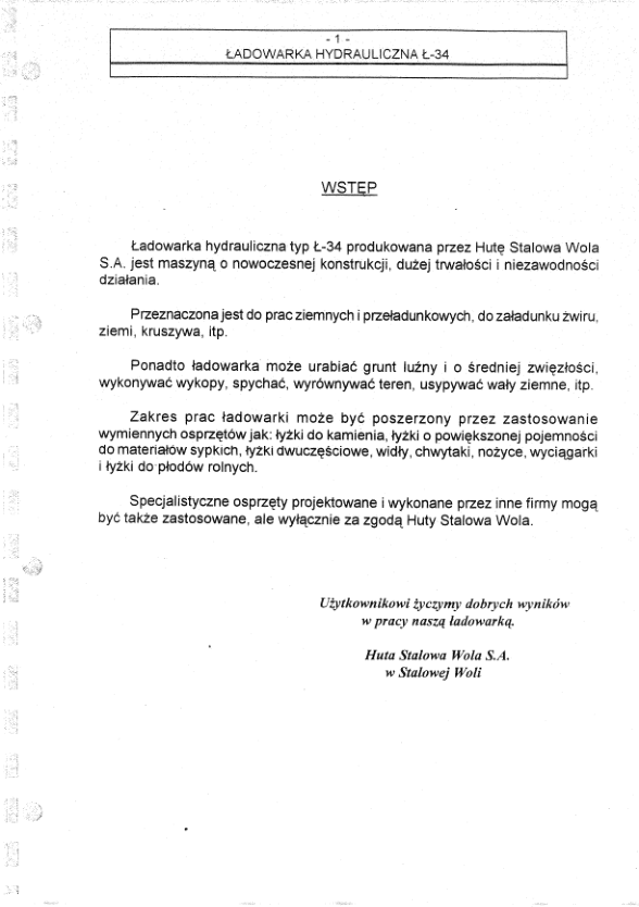 HSW Ł34 Wheel Loader DTR Operation and Maintenance Manual PL