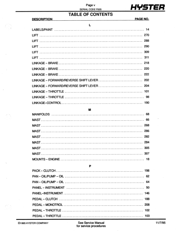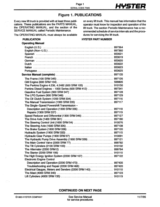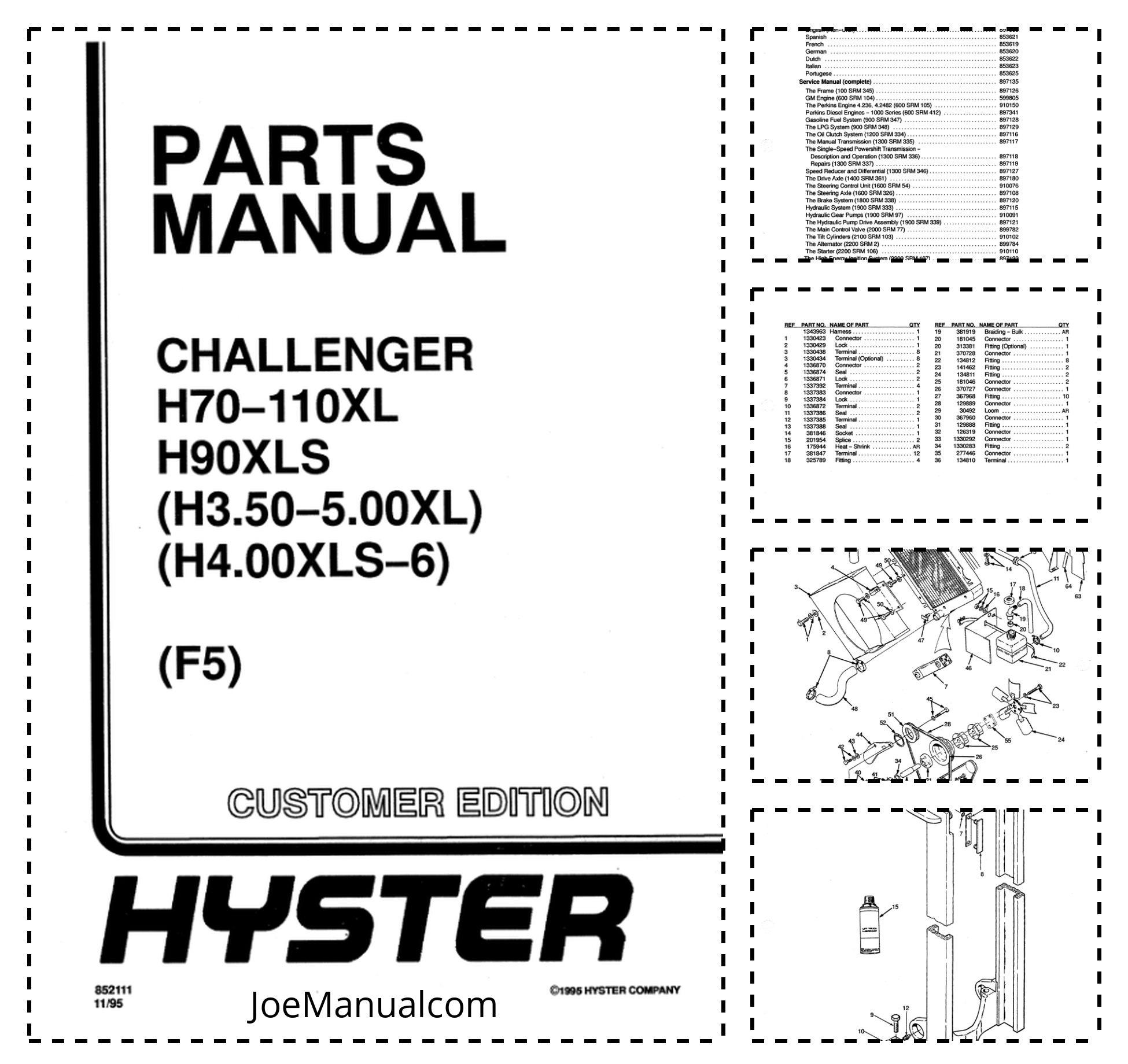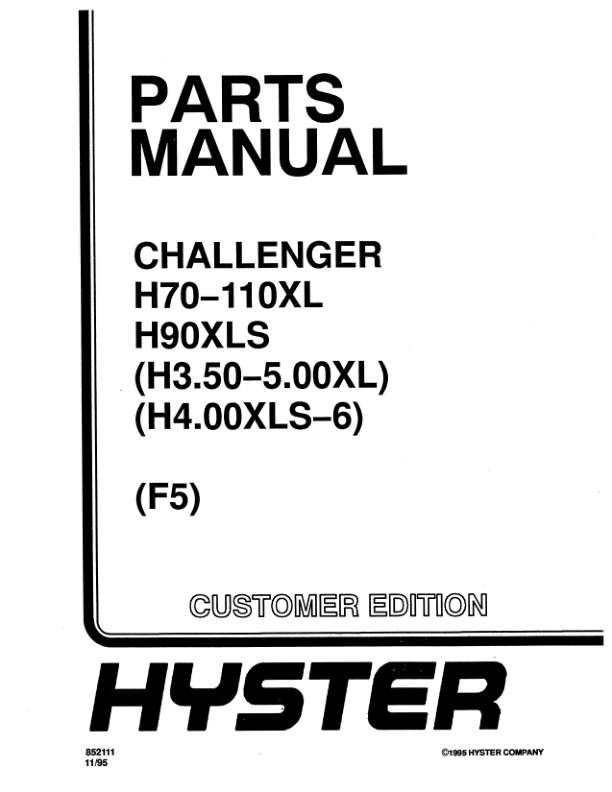 Hyster H70-110XL H90XLS Challenger Forklift Parts Manual