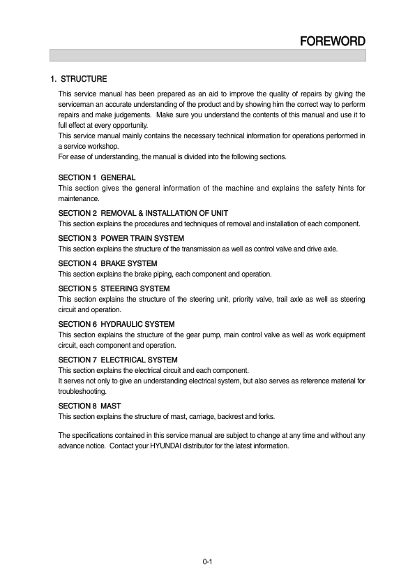 Hyundai 20BC-7 Forklift Service Manual