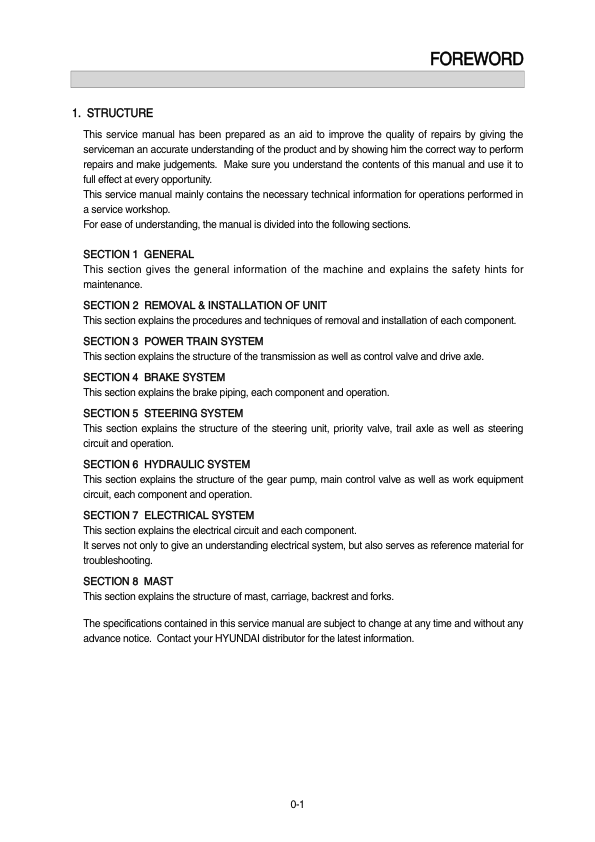 Hyundai 20D-7E Forklift Service Manual