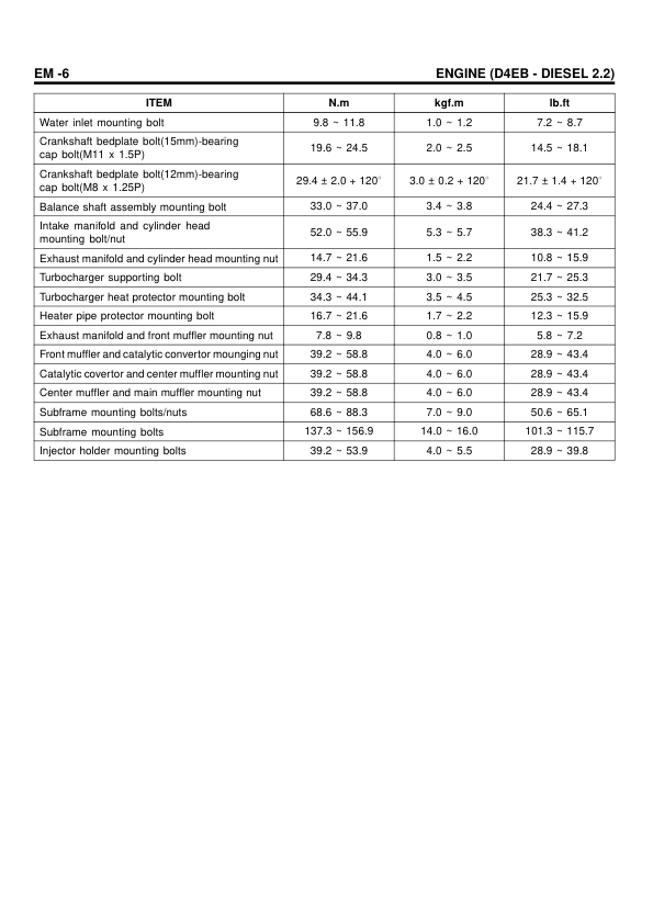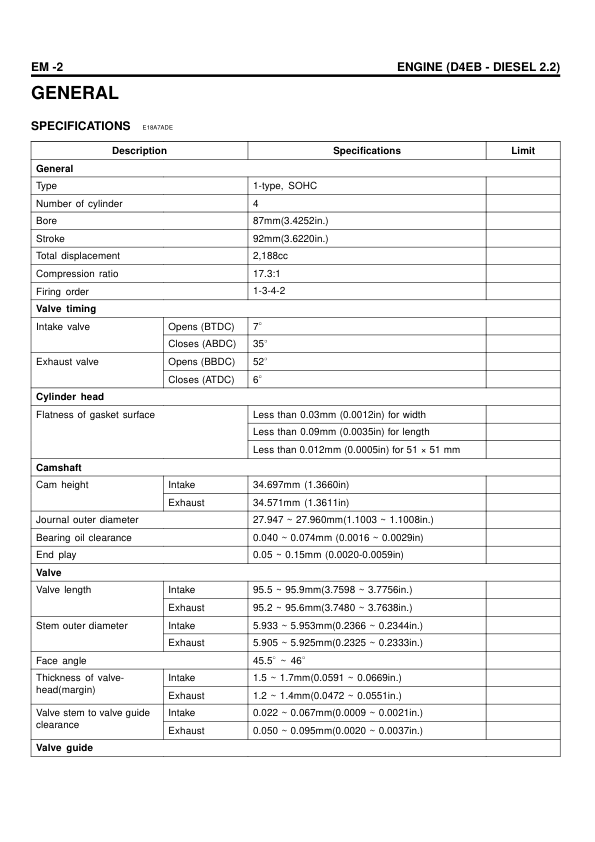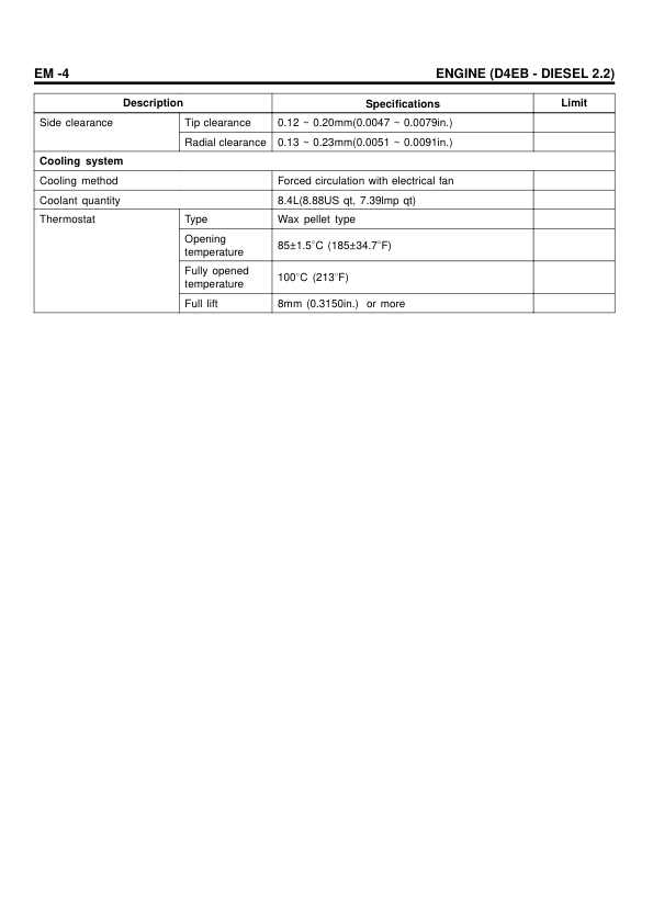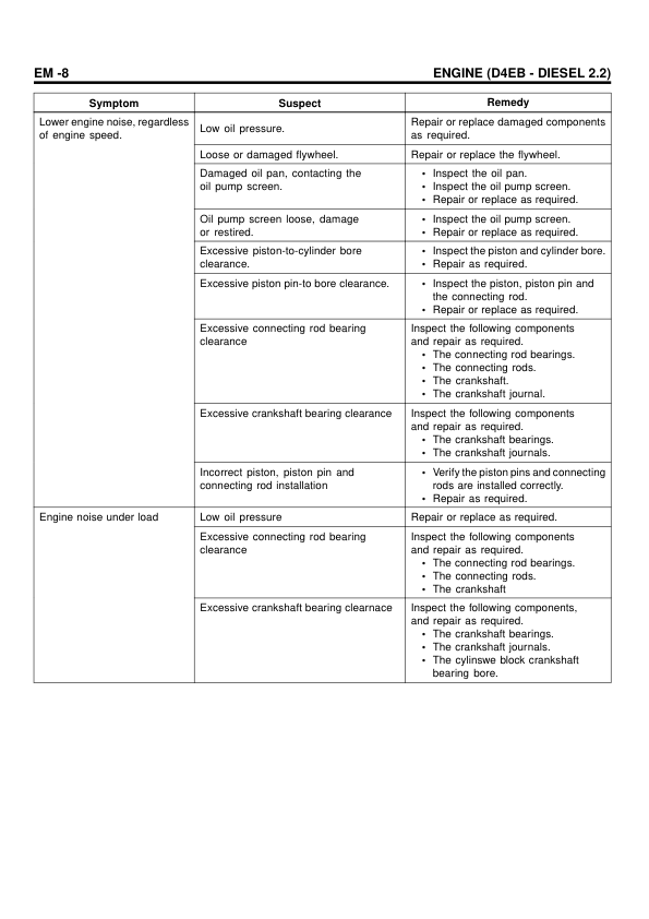 Hyundai D4EB 2.2L Diesel Engine Service Manual