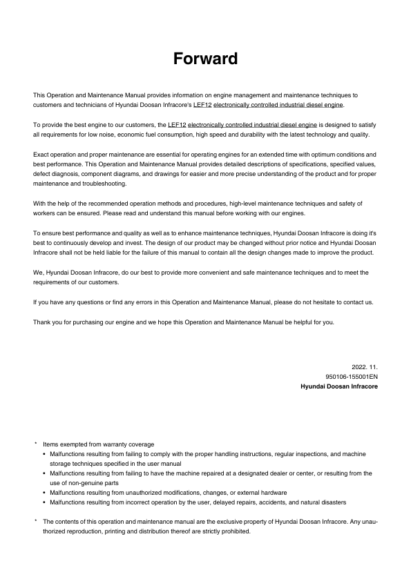 Hyundai Doosan DM02P Diesel Engine Operation and Maintenance Manual