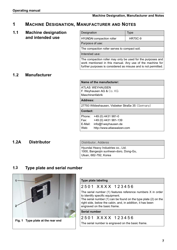 Hyundai HR70C-9 Compaction Roller Operation Manual