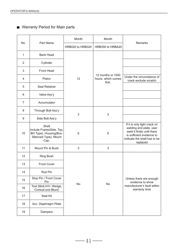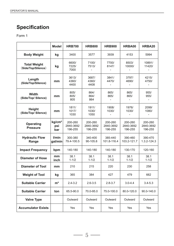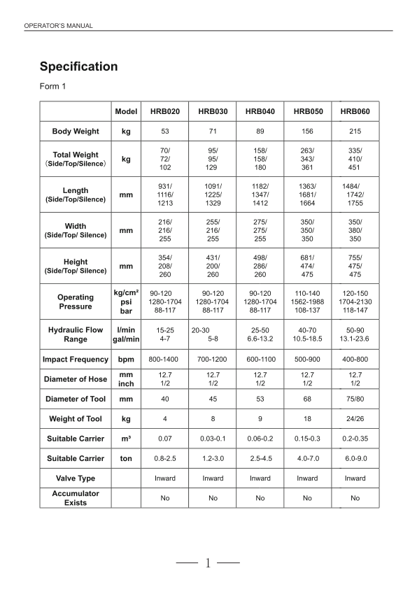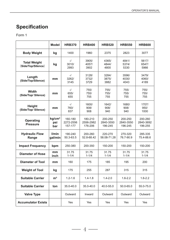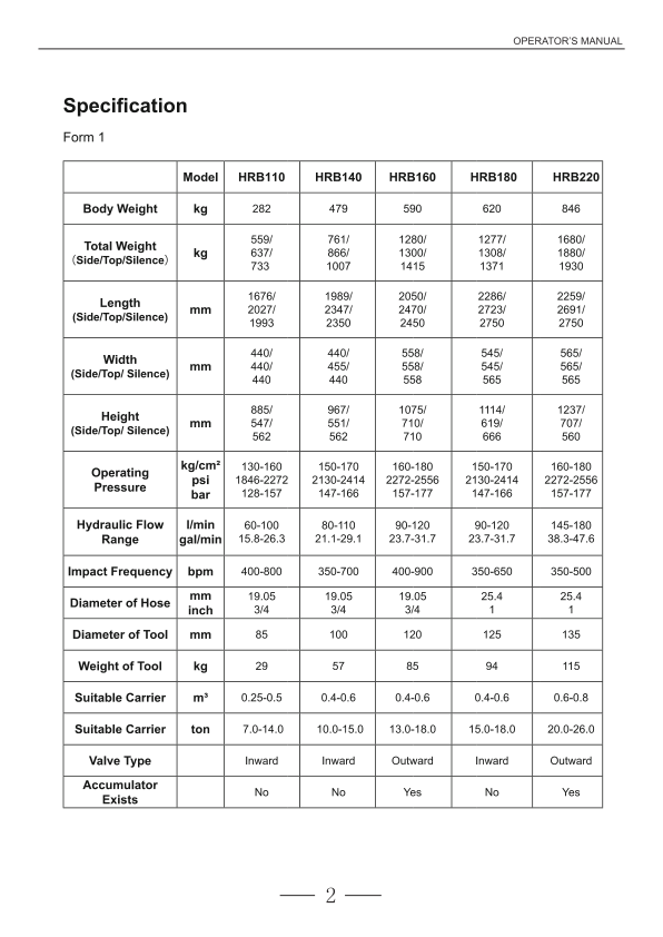 Hyundai HRB Hydraulic Breakers Operation Manual