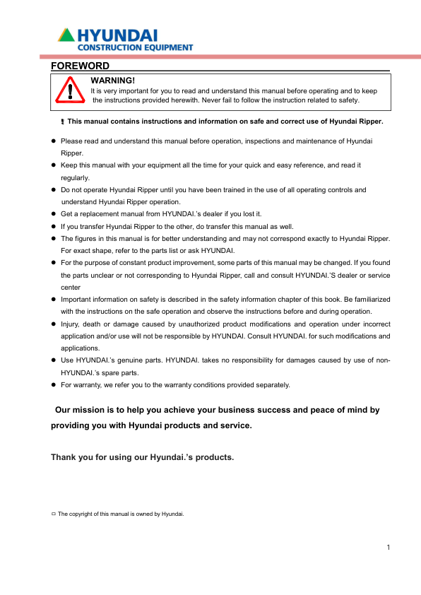 Hyundai HSR250 Vibro Ripper Operation Maintenance Manual