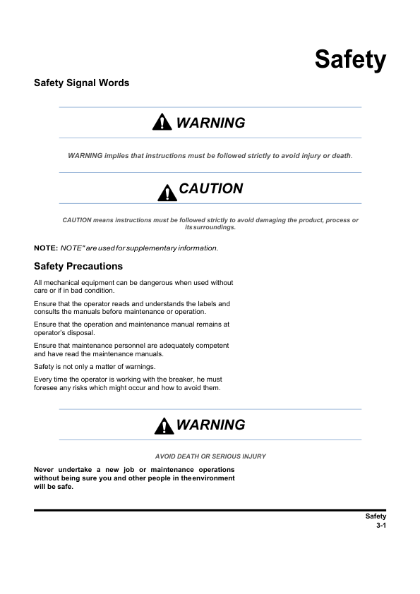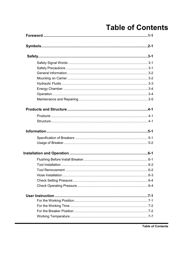Hyundai HTB Hydraulic Breakers Operation Service Manual