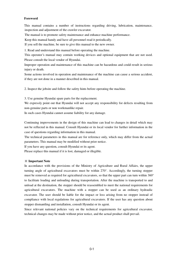 Hyundai HX55S Mini Excavator Operation and Maintenance Manual
