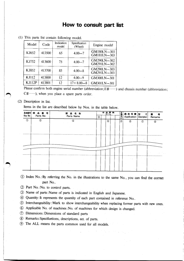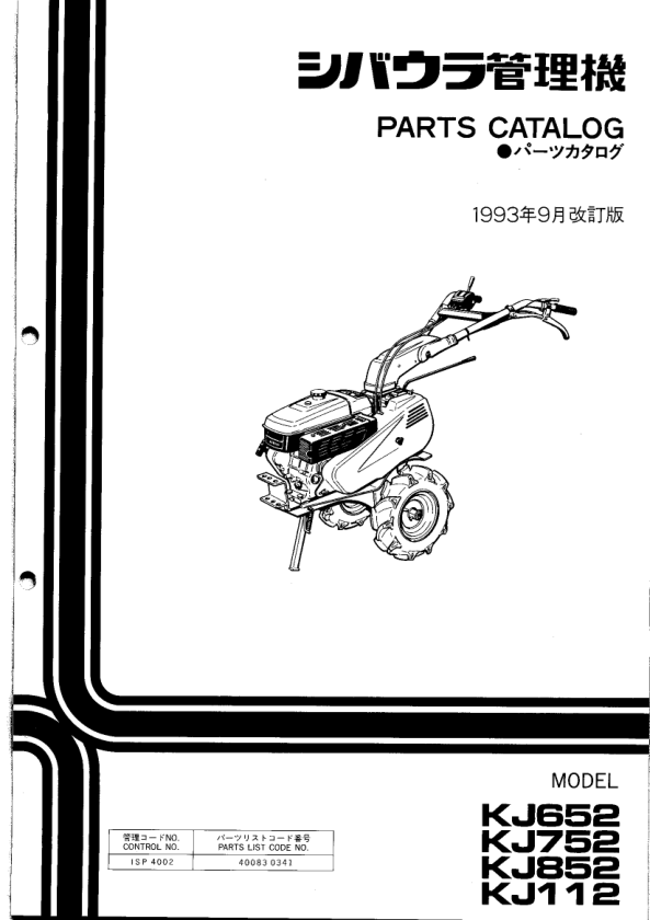 IHI-Shibaura KJ652 KJ752 KJ852 KJ112 Tiller Parts List Catalog