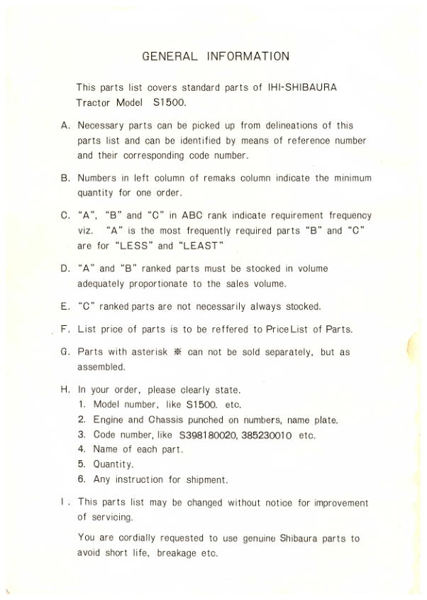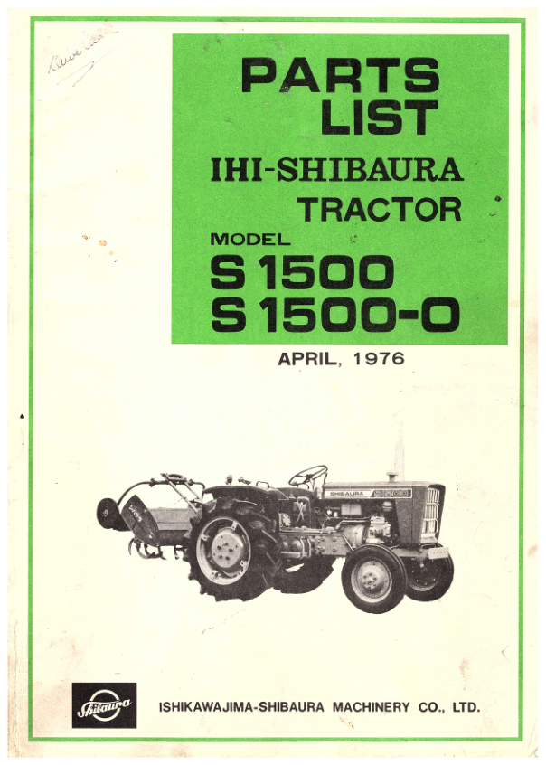 IHI-Shibaura S1500 S1500-0 Tractor Parts List Catalog