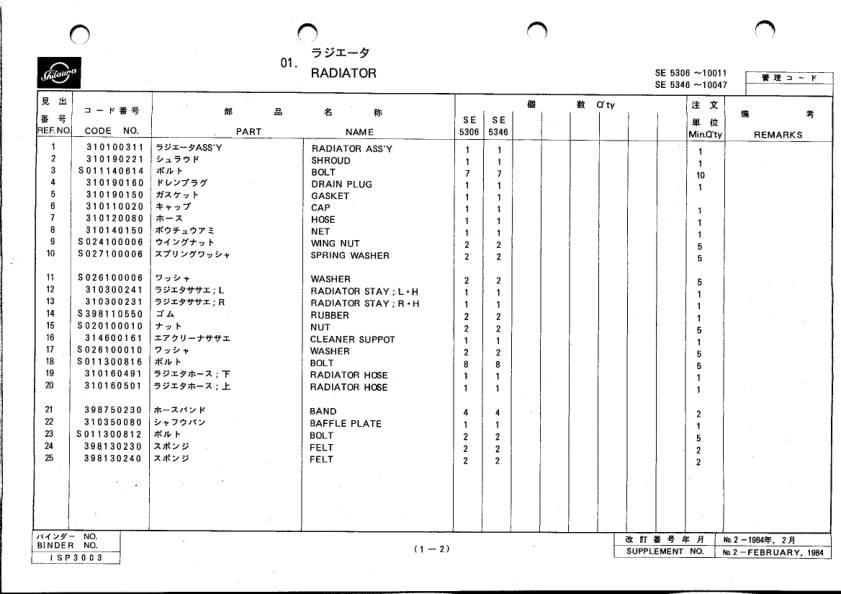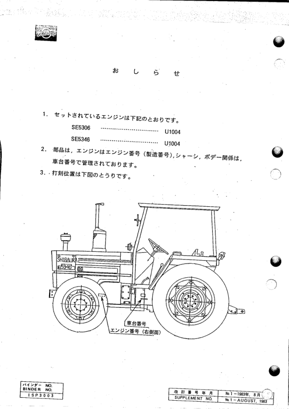 IHI-Shibaura SE5306 SE5346 Tractors Parts List Catalog